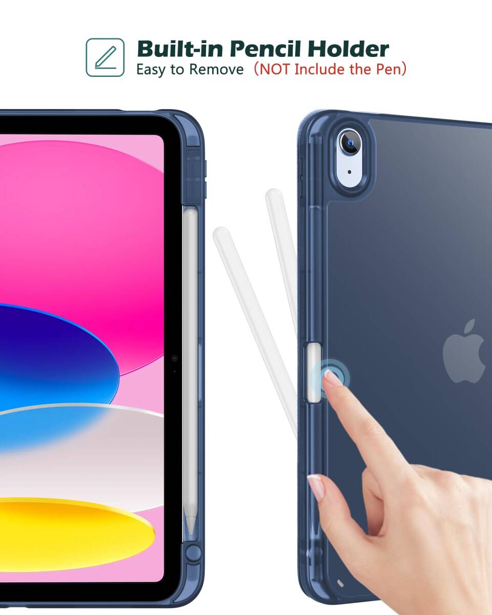 ProCase iPad 11世代/10世代 ケース iPad(A16)11インチ 2025/10.9インチ 2022通用 A2696 A2757 A2777 ペン収納 耐衝撃 三つ折り スタンド スマートカバー (ダークブルー)