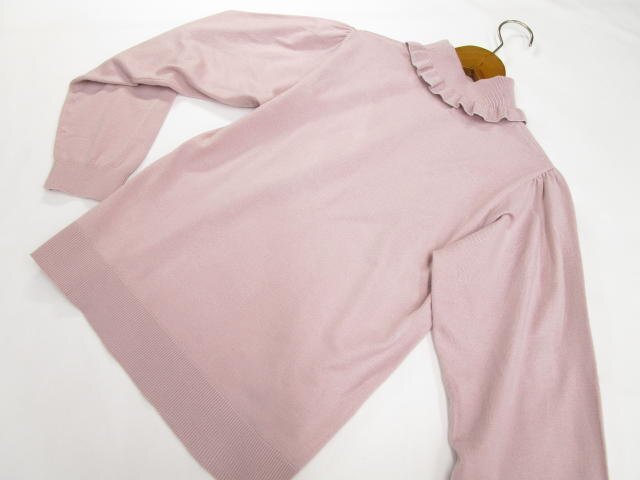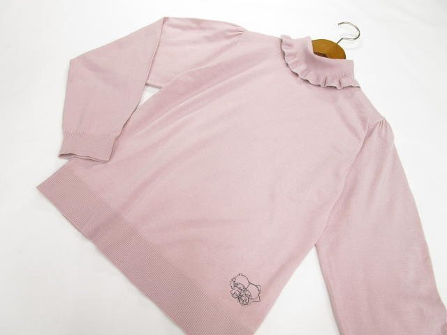 パフスリーブ 長袖 タートルネック 洗えるニットカットソー 38 ダスティピンク キキララ刺しゅう 【メール便可】