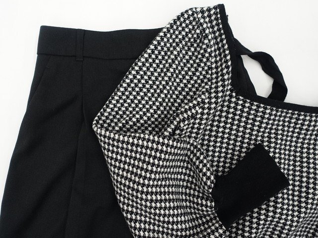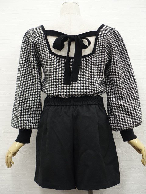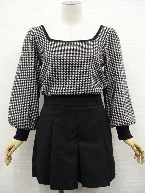 洗える長袖ニットセーター+キュロットスカート コーディネート上下2点セット M相当 ブラック×ホワイト 千鳥格子/ブラック ガーリー系 20代