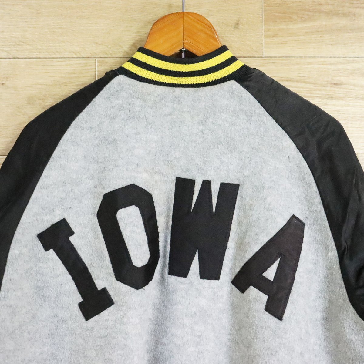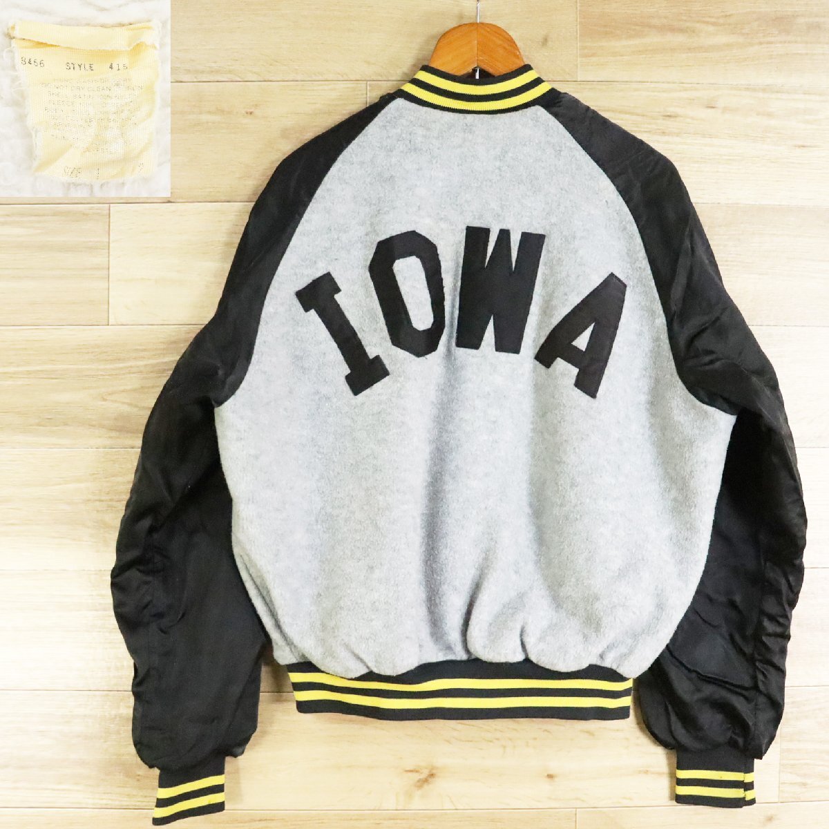 E5O/O4.8-5 アメリカ古着 スタジャン IOWA HAWKS アイオワ・ホークアイズ 袖切り替え アワードジャケット バーシティジャケット L