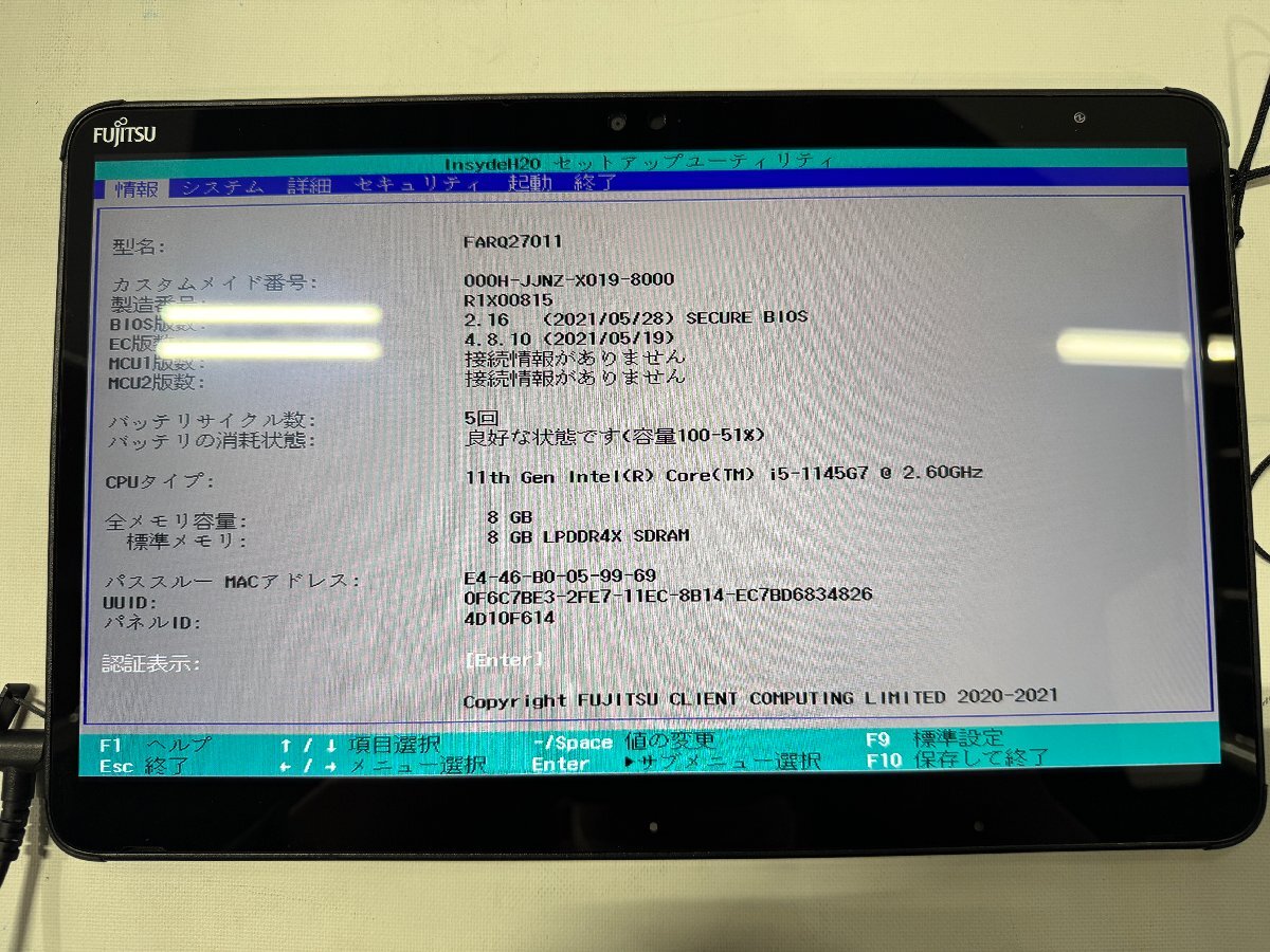 BIOS画面上では「良好な状態」と表示されていました。 ※なお中古品のため消耗度合や持続時間については保証対象外とさせていただきます。 |
