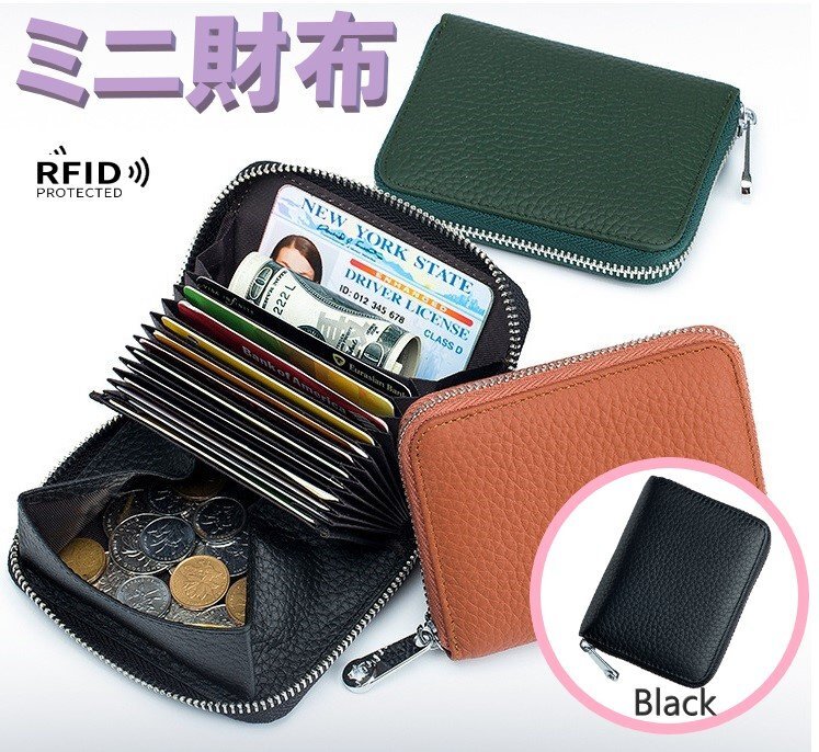 ミニ財布 レディース ブラック 本革 財布 さいふ 小銭入れ がま口財布 薄型 コインケース カードケース スキミング防止 n512