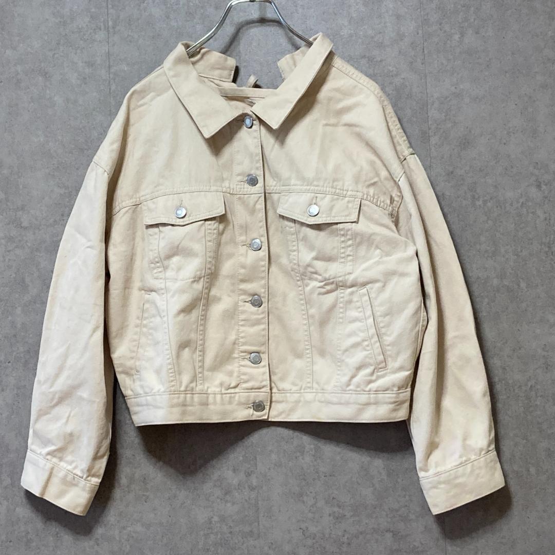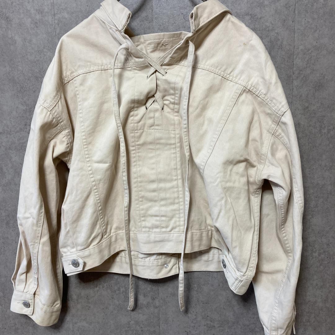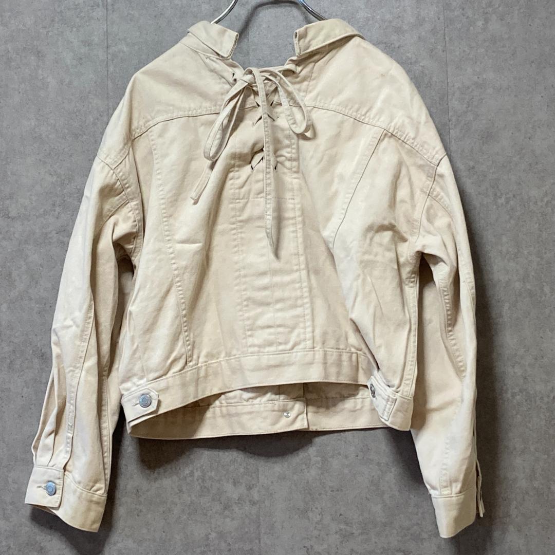 コルザ(M)デニムジャケット*Gジャン*バックリボン*編み上げ*ブルゾン*白系