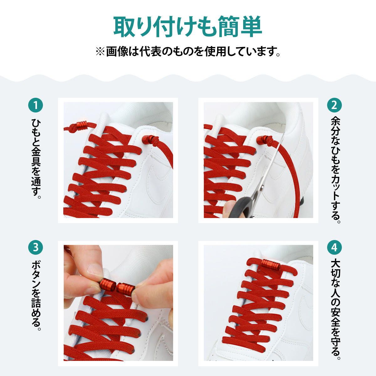| ご注意 | 1.通常の伸縮性のない靴紐や丸く太い靴紐には使用できません。 2.手工測定にはわずかな誤差がありますので、ご理解ください。 3.ディスプレイや照明の影響により、実際の色が画像と若干異なる場合があります。 |