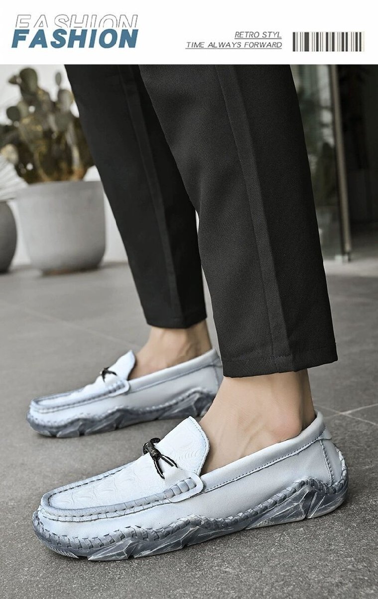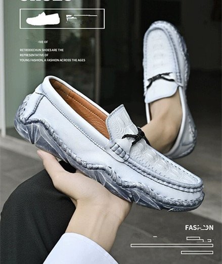 XX-22085 44/白灰/38-46選 英国風レ超軽量 牛革 ドライビングシューズ メンズ 鰐柄 手作り スリッポン ローファー レザーシューズ 紳士靴
