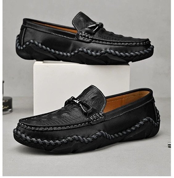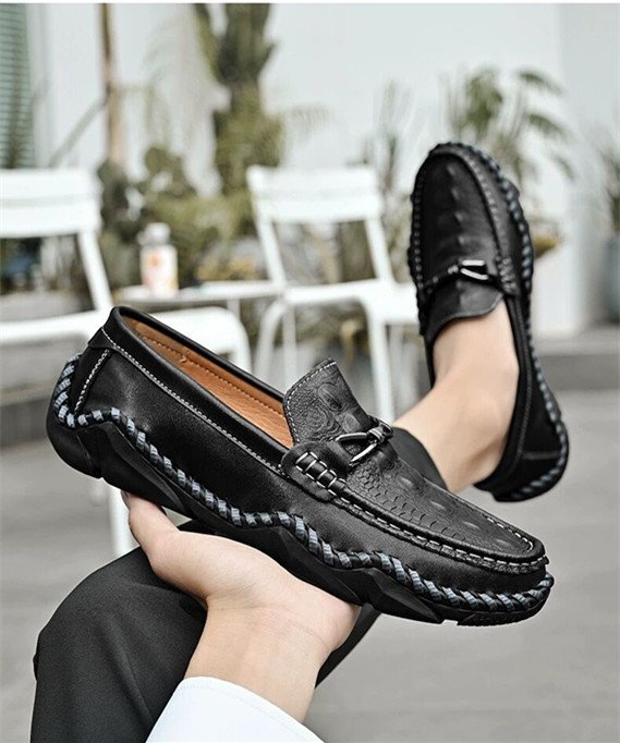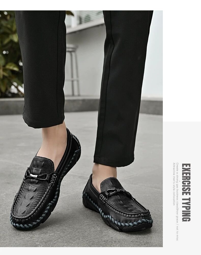 XX-22085 40/黒/38-46選 英国風レ超軽量 牛革 ドライビングシューズ メンズ 鰐柄 手作り スリッポン ローファー レザーシューズ 紳士靴