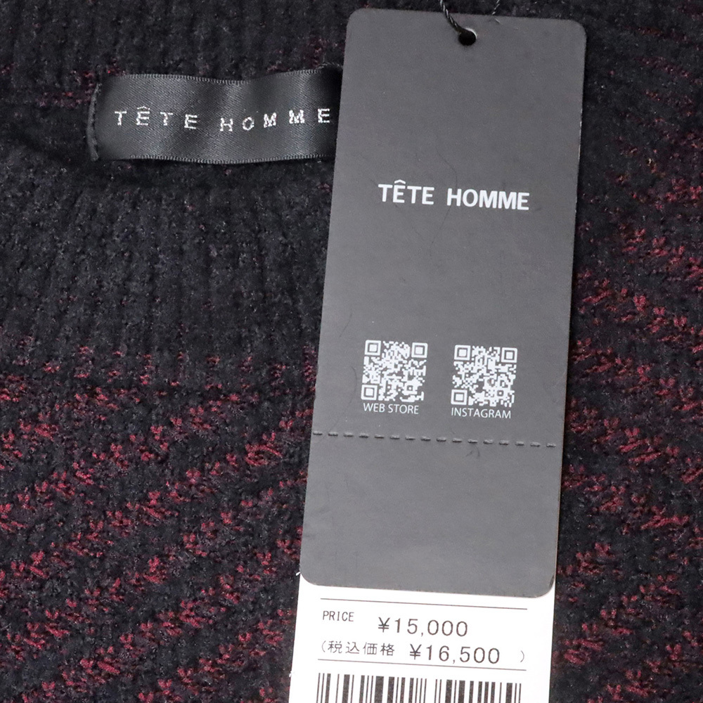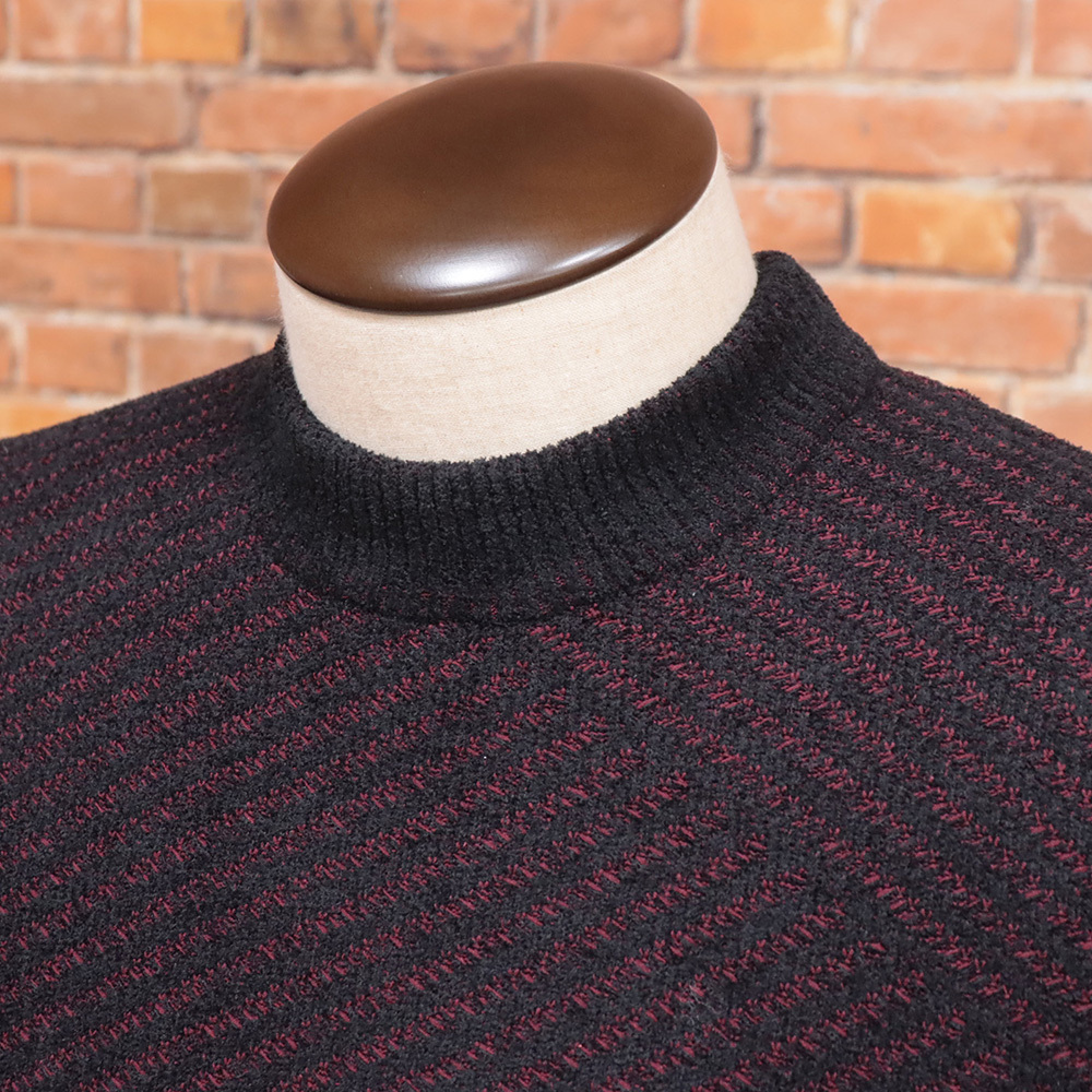 1円/24秋冬/TETE HOMME/Mサイズ/モールニット 1024667051 保温 やわらか モックネック バイアス柄 新品/赤/ボルドー/ma452/