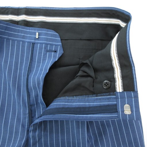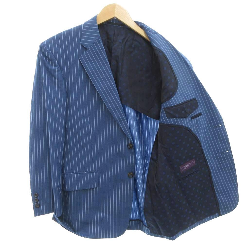 アリストン ARISTON SUPER 130'S セットアップ スーツ ジャケット パンツ 春夏 背抜き シングル ストライプ 青 ブルー メンズ