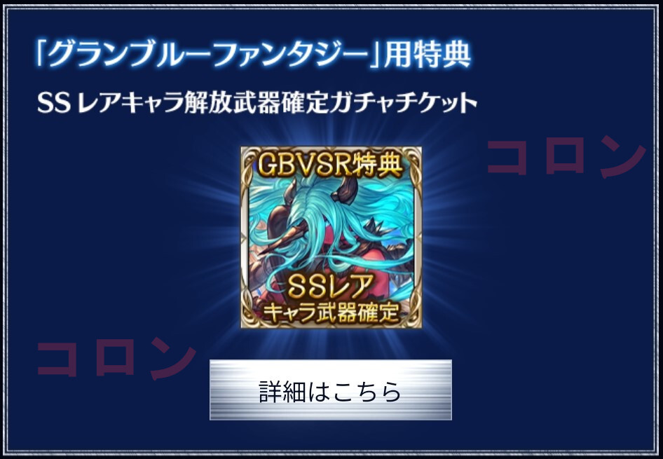 DLCヴェルサシア購入特典「SSレアキャラ解放武器確定ガチャチケット」シリアルコード グランブルーファンタジー VS ライジング