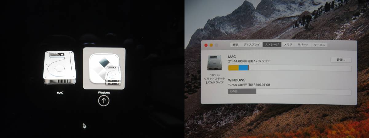 ◆ ストレージ SSD:爆速 SSD 512GB 大容量 ( パーティションはMac,Windowsそれぞれ SSD 256GBで分けてありますので、ご利用目的に応じて使い分けできます。)
