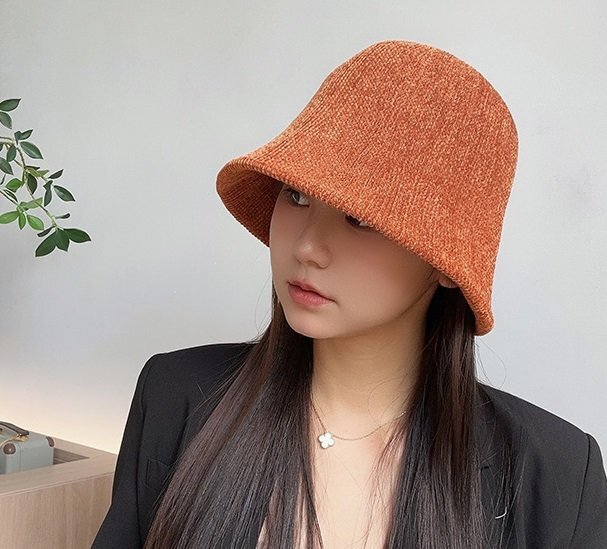 バケットハット オレンジ レディース 帽子 ハット 冬 エレガント おしゃれ もこもこ 上品 秋 春 暖かい 防寒 小顔効果