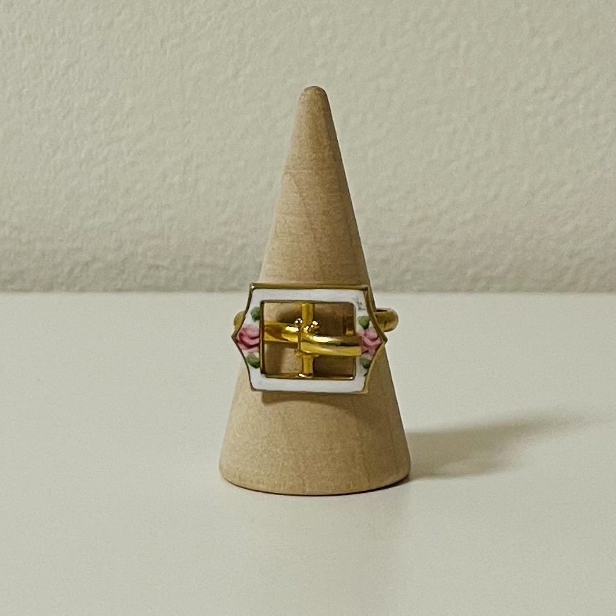 644 アンティーク ビンテージ コスチュームアクセサリー リング 指輪 未使用保管品! ゴールドカラー 花 フラワー かわいい 海外製