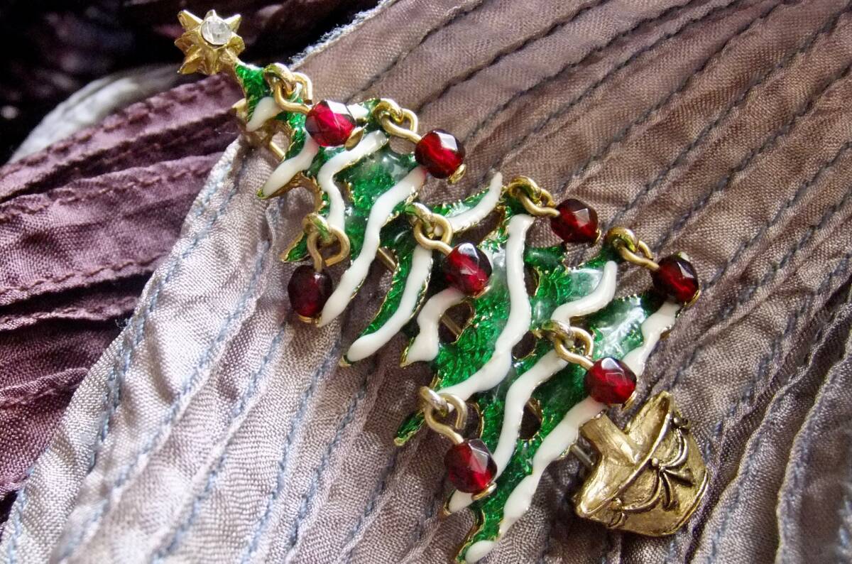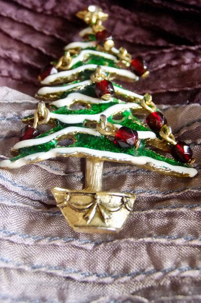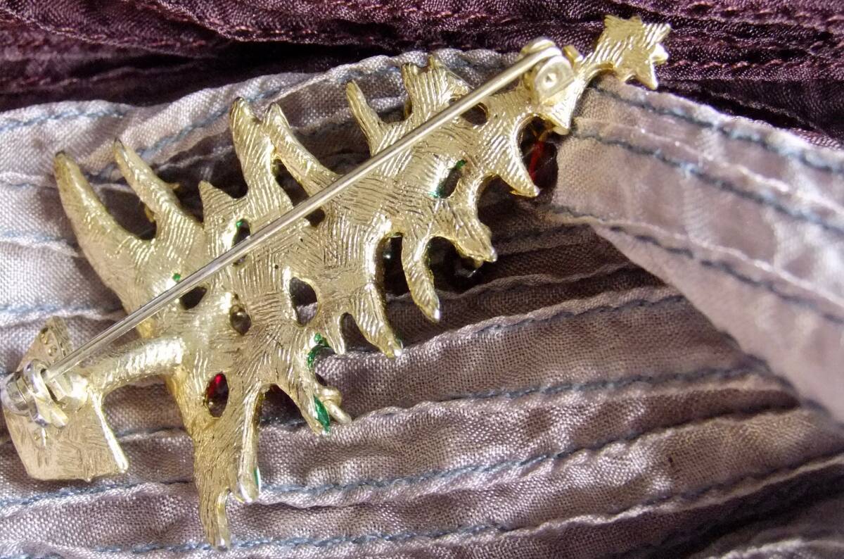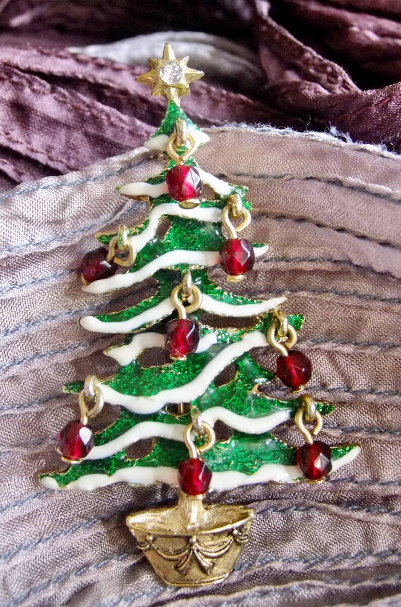 Avon NR刻印:レッドビーズが揺れるクリスマスツリーブローチ 4-78