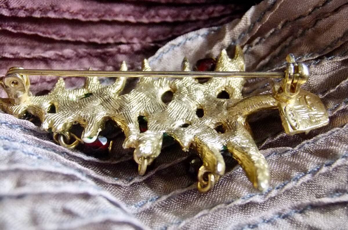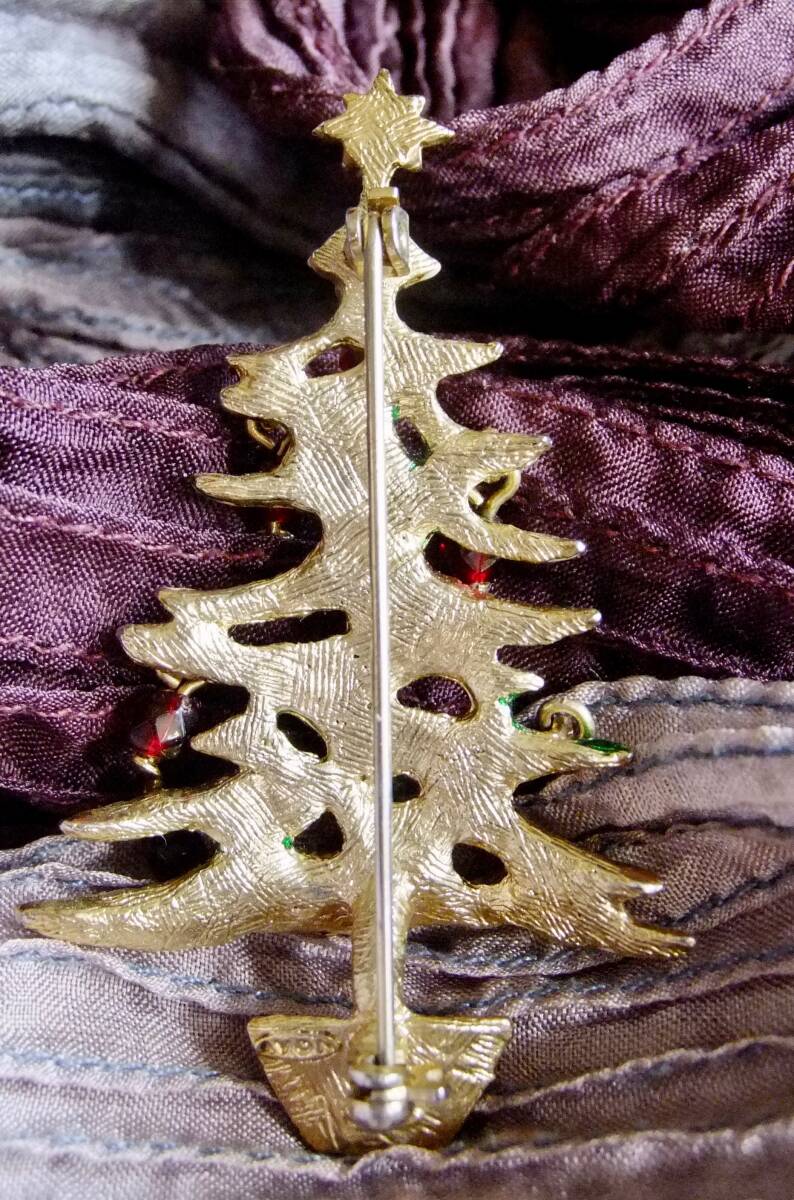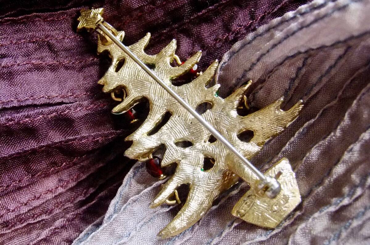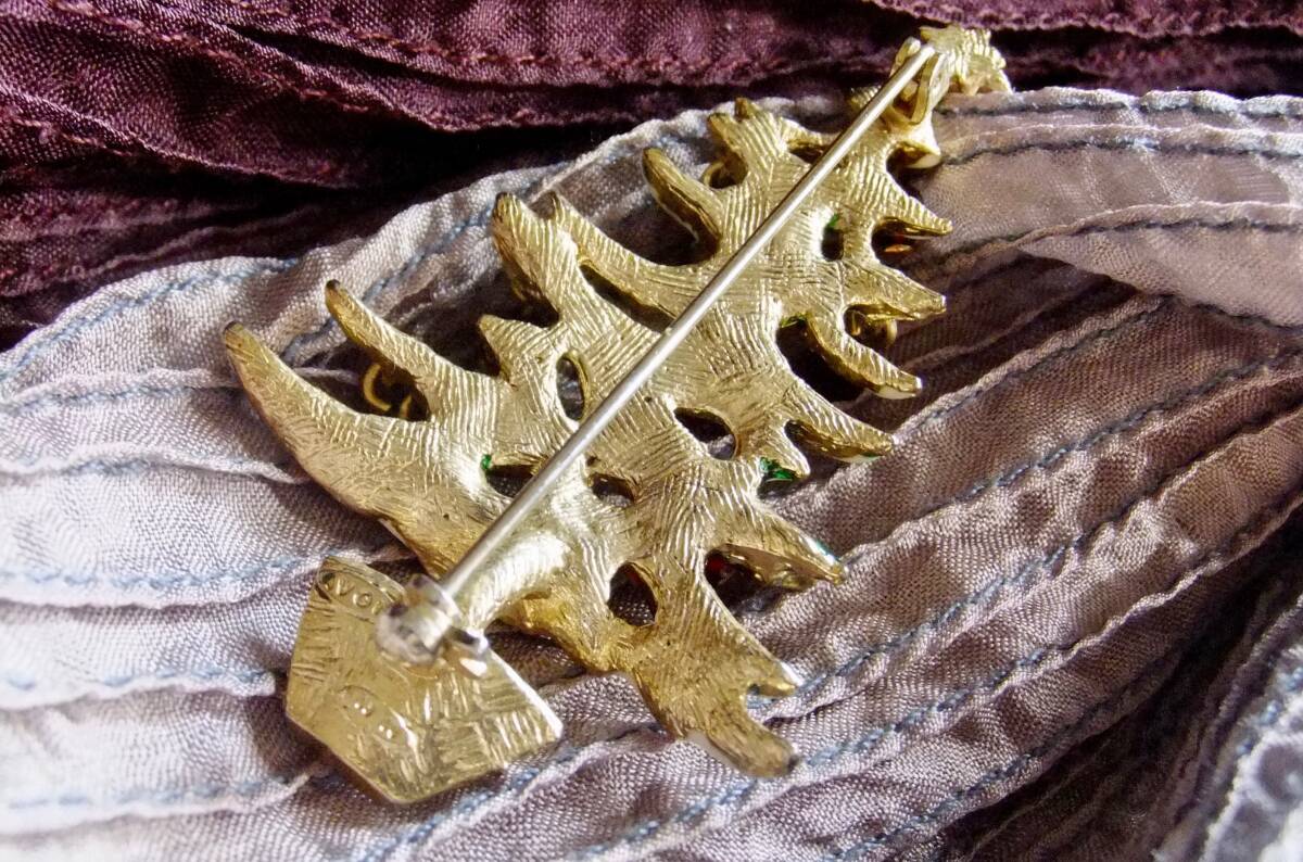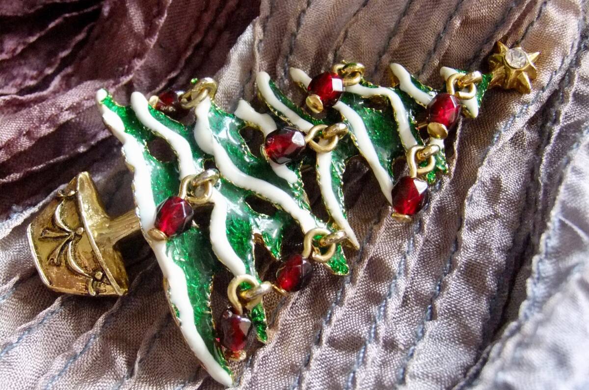 Avon NR(1886年〜)刻印、レッドビーズが揺れるクリスマスツリーブローチ。