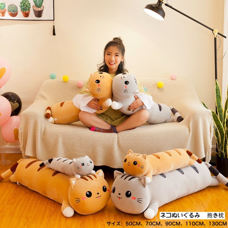 ネコぬいぐるみ 抱き枕 おもちゃ 猫 縫い包み 可愛い 寝そべり 動物抱き枕 癒し 添い寝枕 動物抱き枕 柔らか 子供の日 グレー 90CM