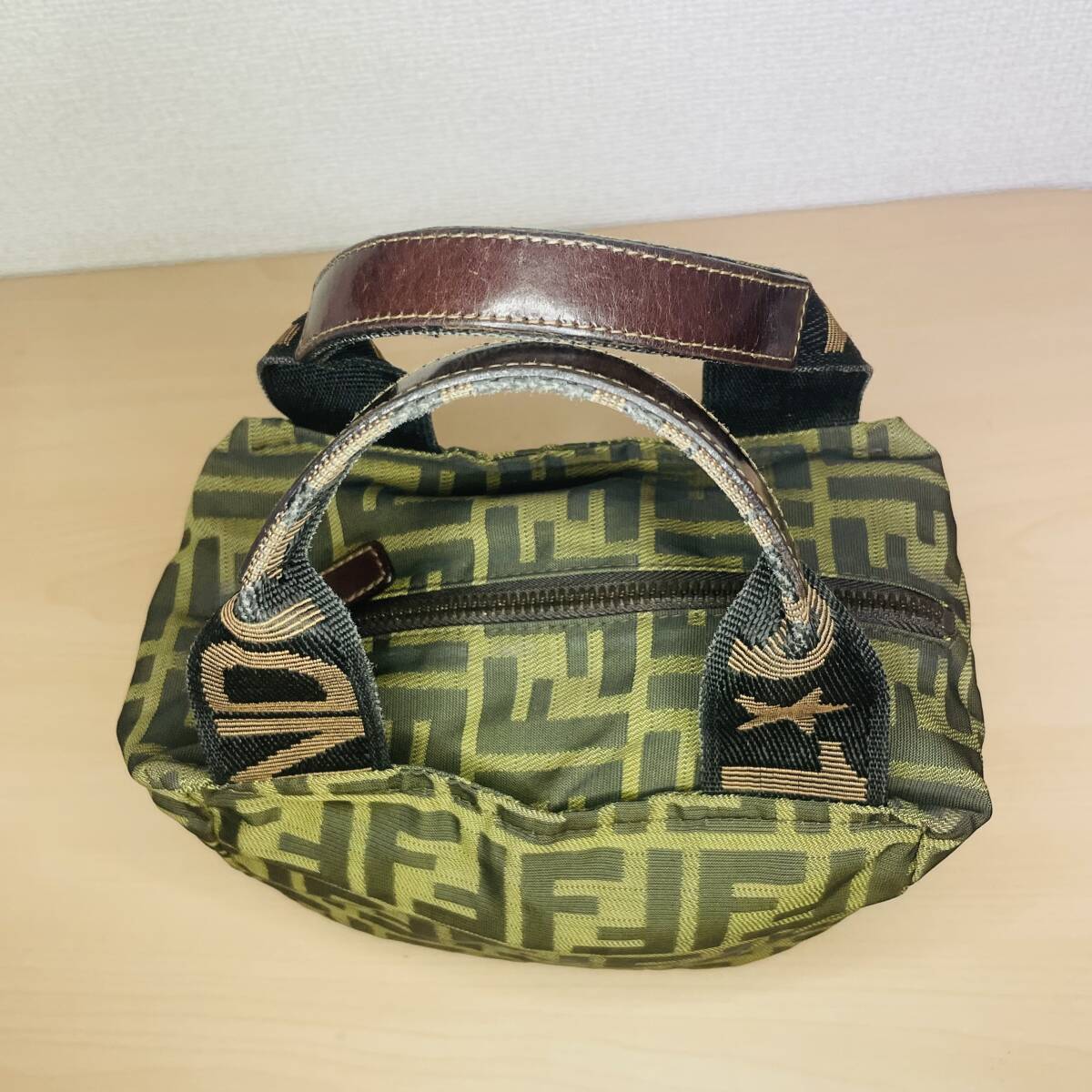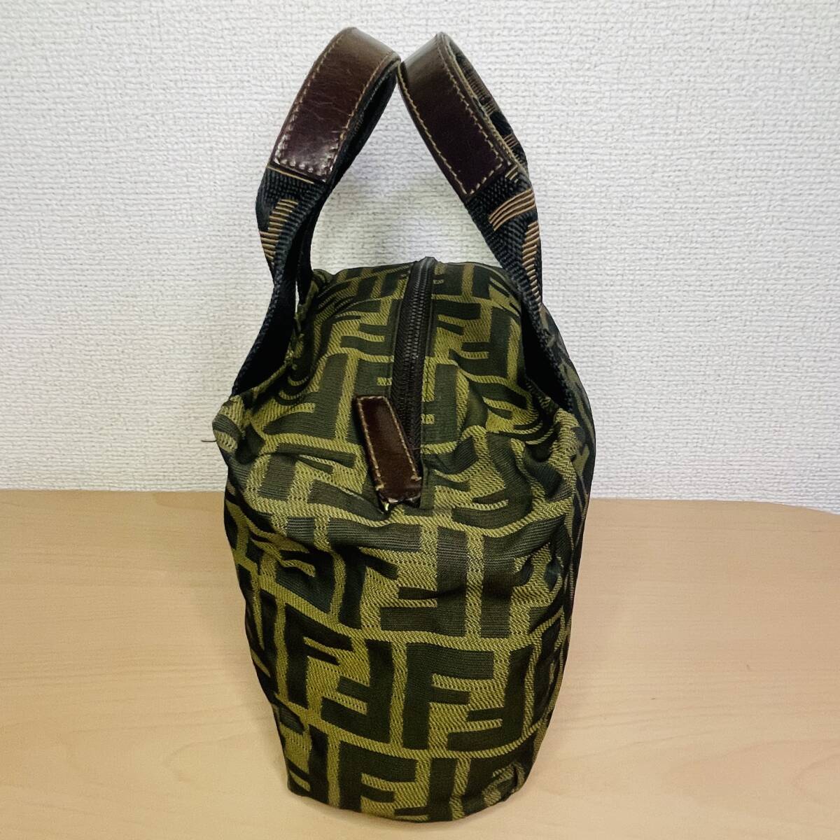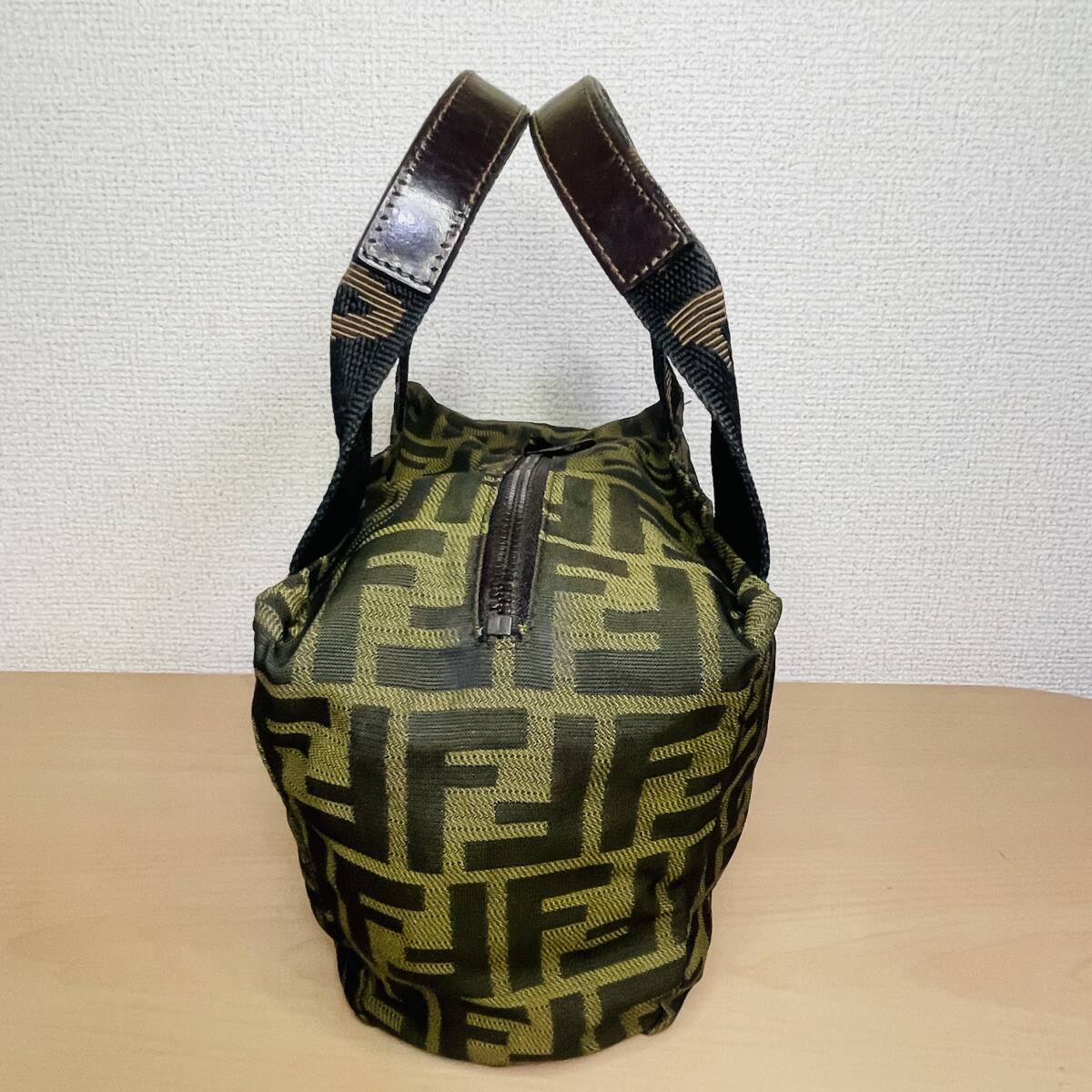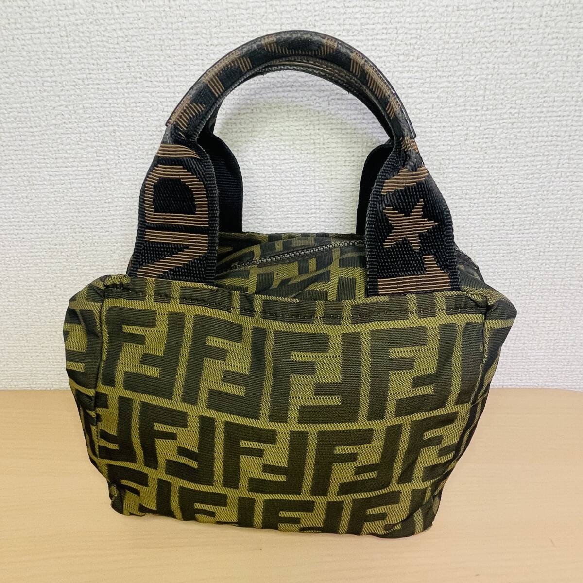 1円 FENDI フェンディ ズッカ柄 ミニトートバッグ ハンドバッグ キャンバス×レザー ブラウン系