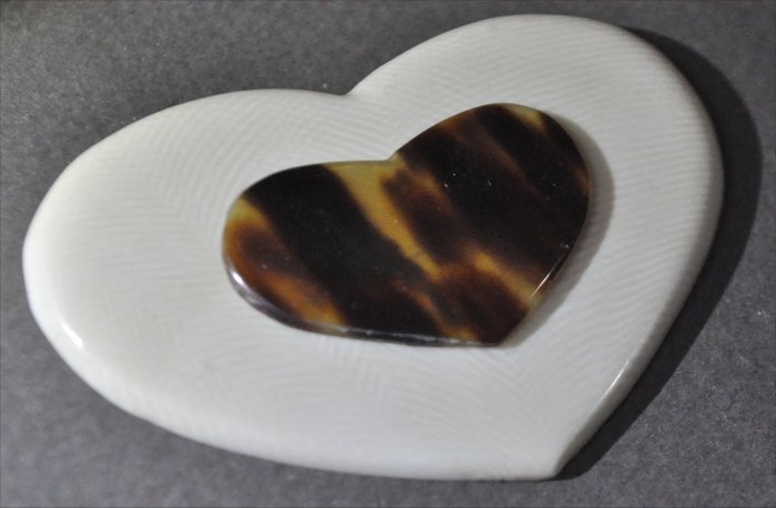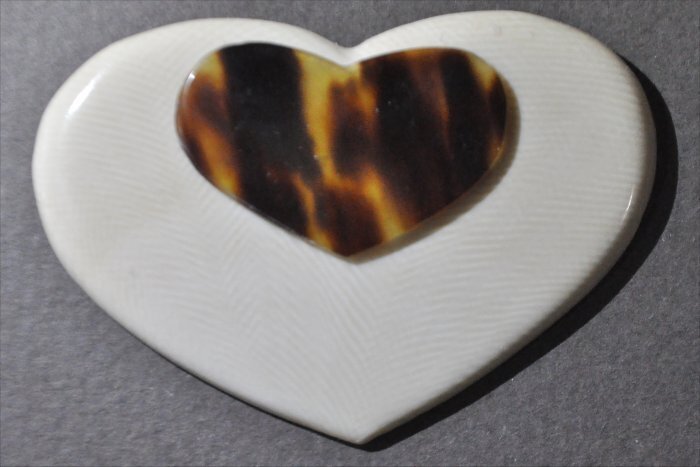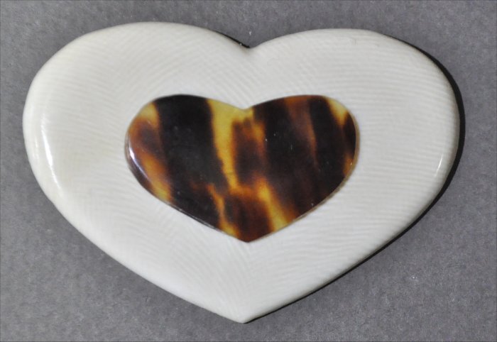 ナンタケットバスケット用の本べっ甲とマンモス牙のハートデザインセットオーナメント