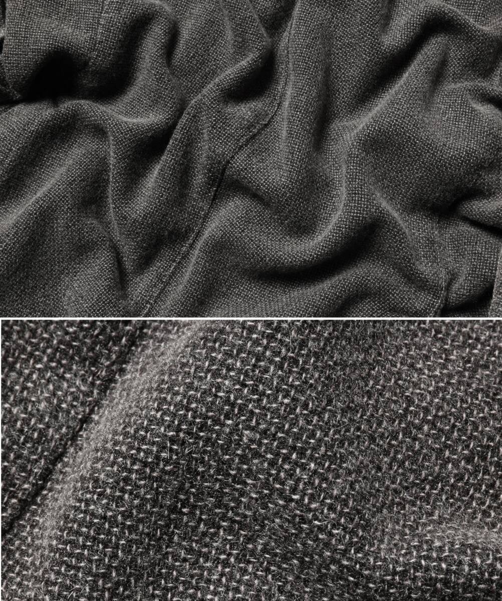 ざっくりしているのに、¨なめらかなしっとりとしたやさしい肌触り¨は極上カシミアの証! ツイードのわりには、目付けが非常に軽くしなやかさにおいてもおよそ着ていることを忘れてしまうほどに 柔らかく繊細なのでストレスなく着用できます。ヌメリのある極上の質感、肌を優しく撫ぜる温もり、 エアリーな量感・・・・・、ともに申し分なく、羽織ればこの上ない快適さを約束することは言うまでもないでしょう。 絶妙なフェード感、自然な色合いもまた最高である。
