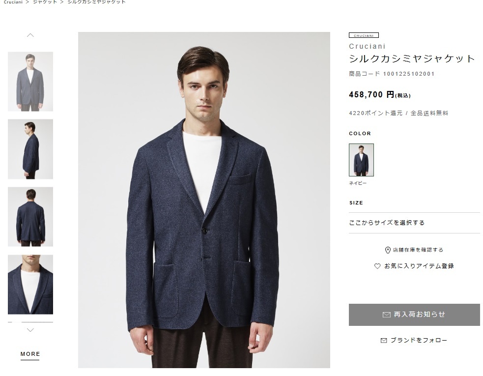 至福の肌触りを満喫できる、自慢の「 カシミア100%ジャケット 」