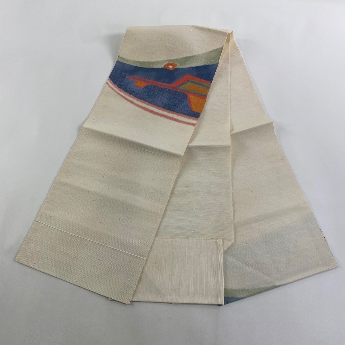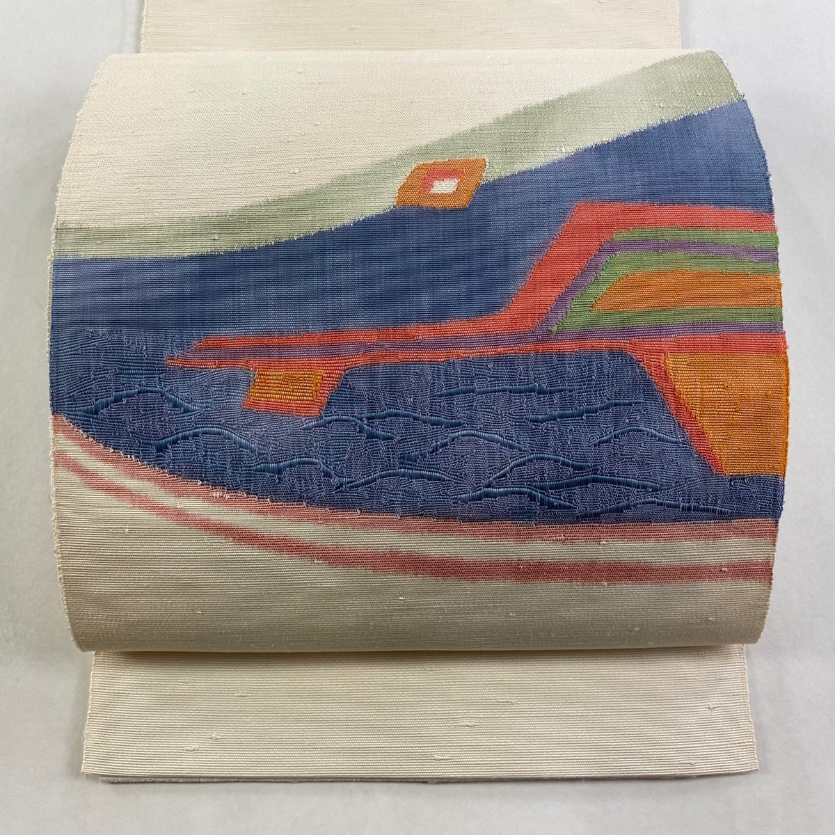 | 名古屋帯 美品 秀品 八寸名古屋帯 松葉仕立て 幾何学模様 波 クリーム 正絹 【中古】 |