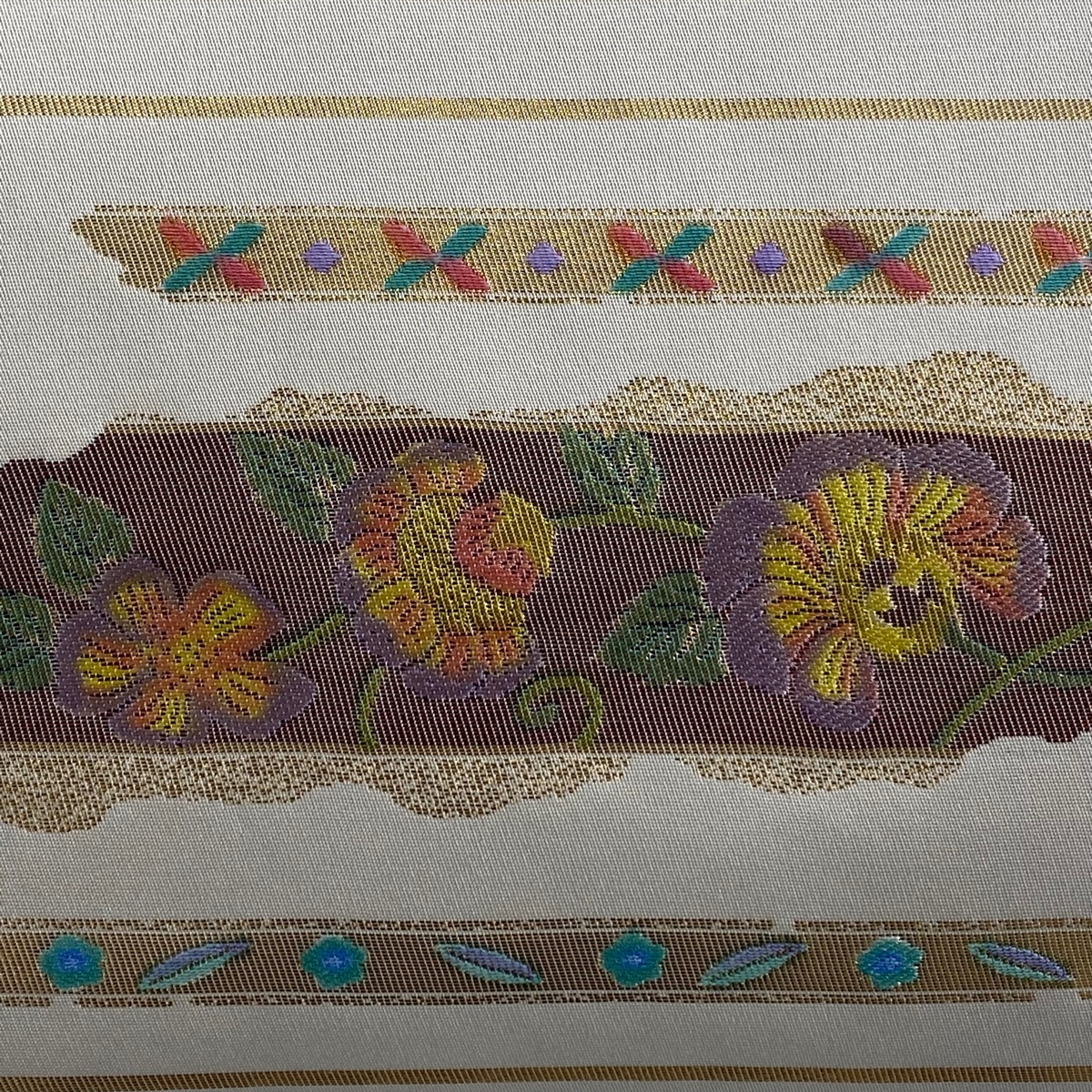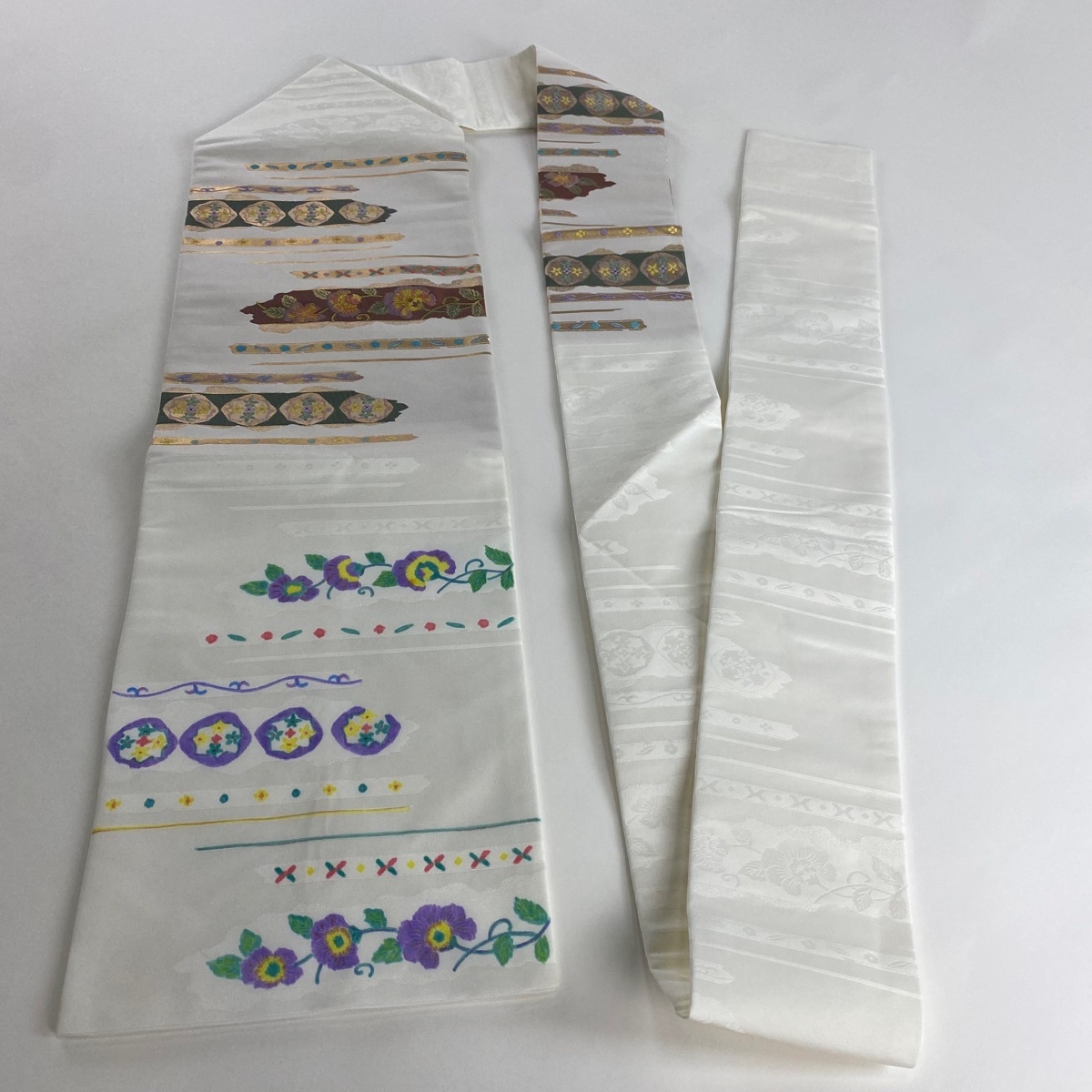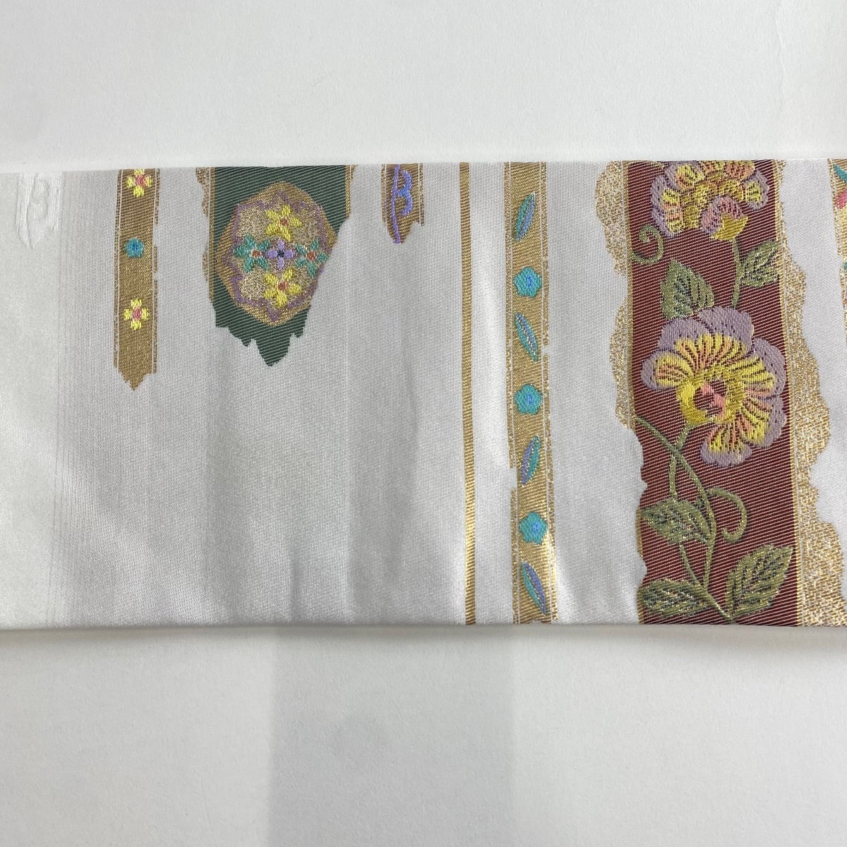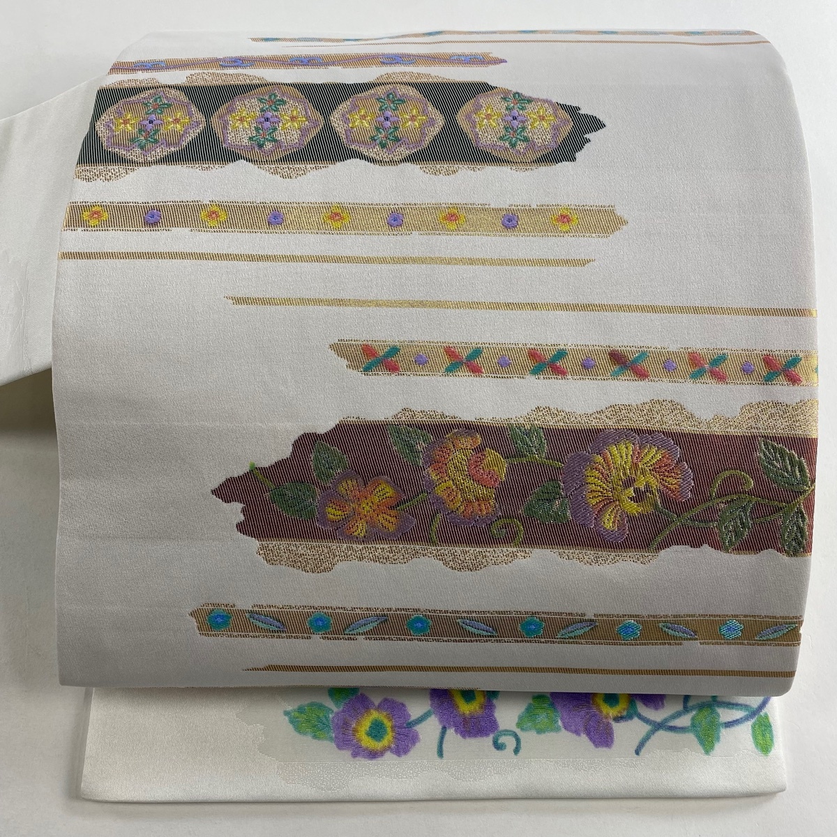 | 名古屋帯 美品 優品 草花 幾何学模様 箔 白 化繊 【中古】 |