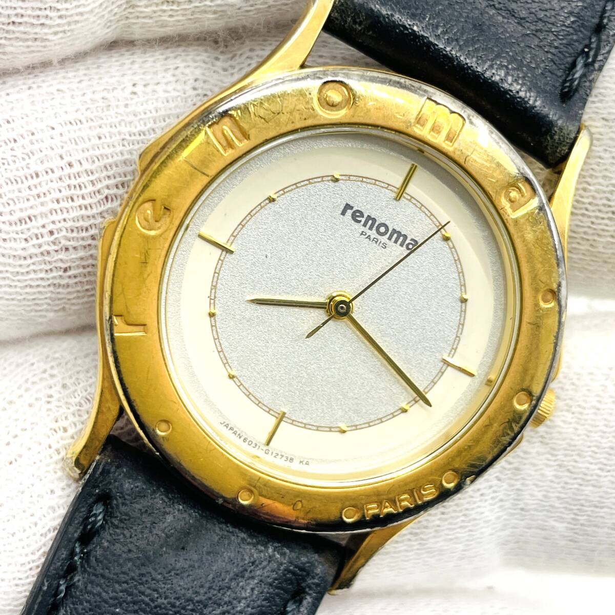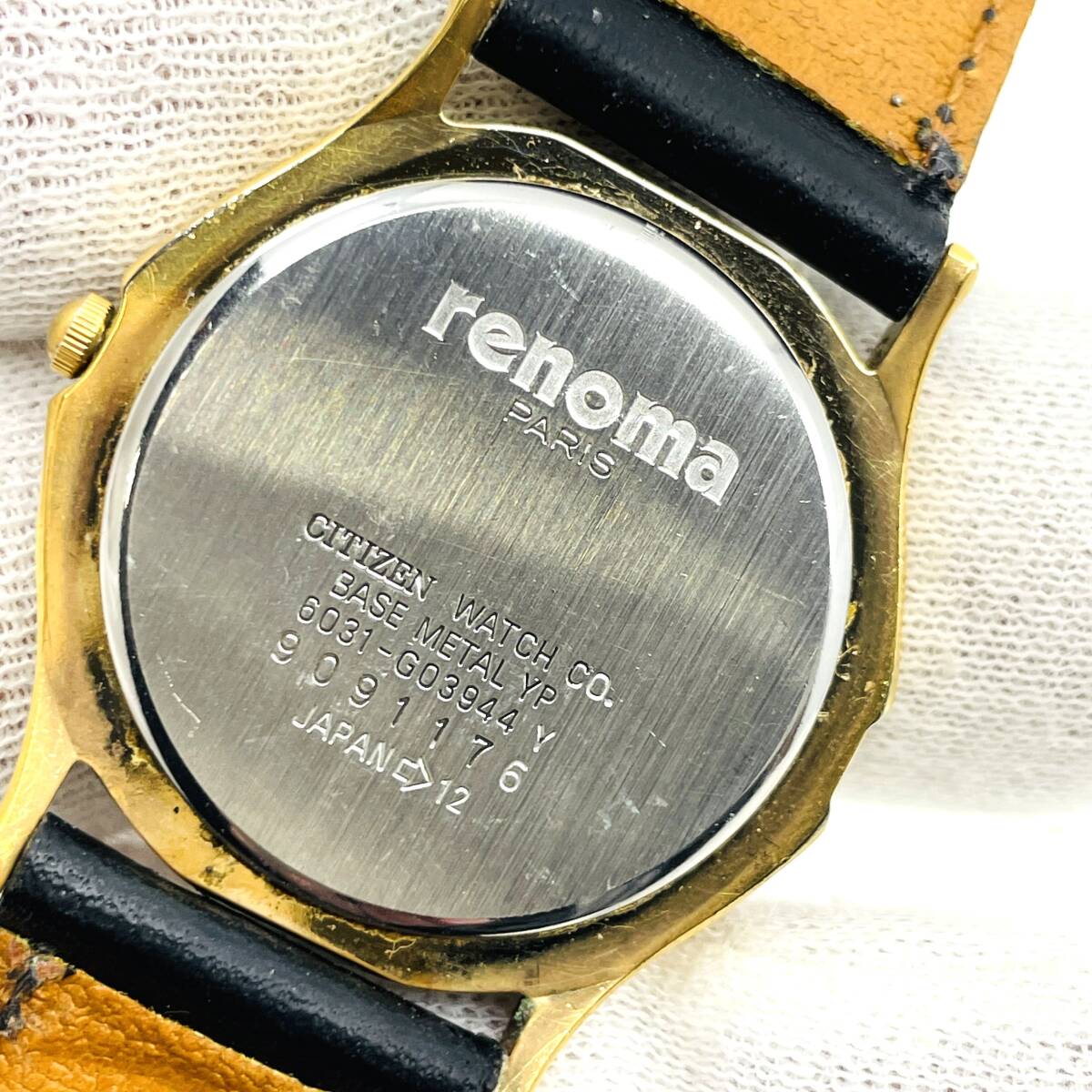 【動作未確認】CITIZEN シチズン renoma レノマ クォーツ 腕時計 シルバー文字盤 3針 ラウンド ケースゴールド ベゼルロゴ 6031-G03944