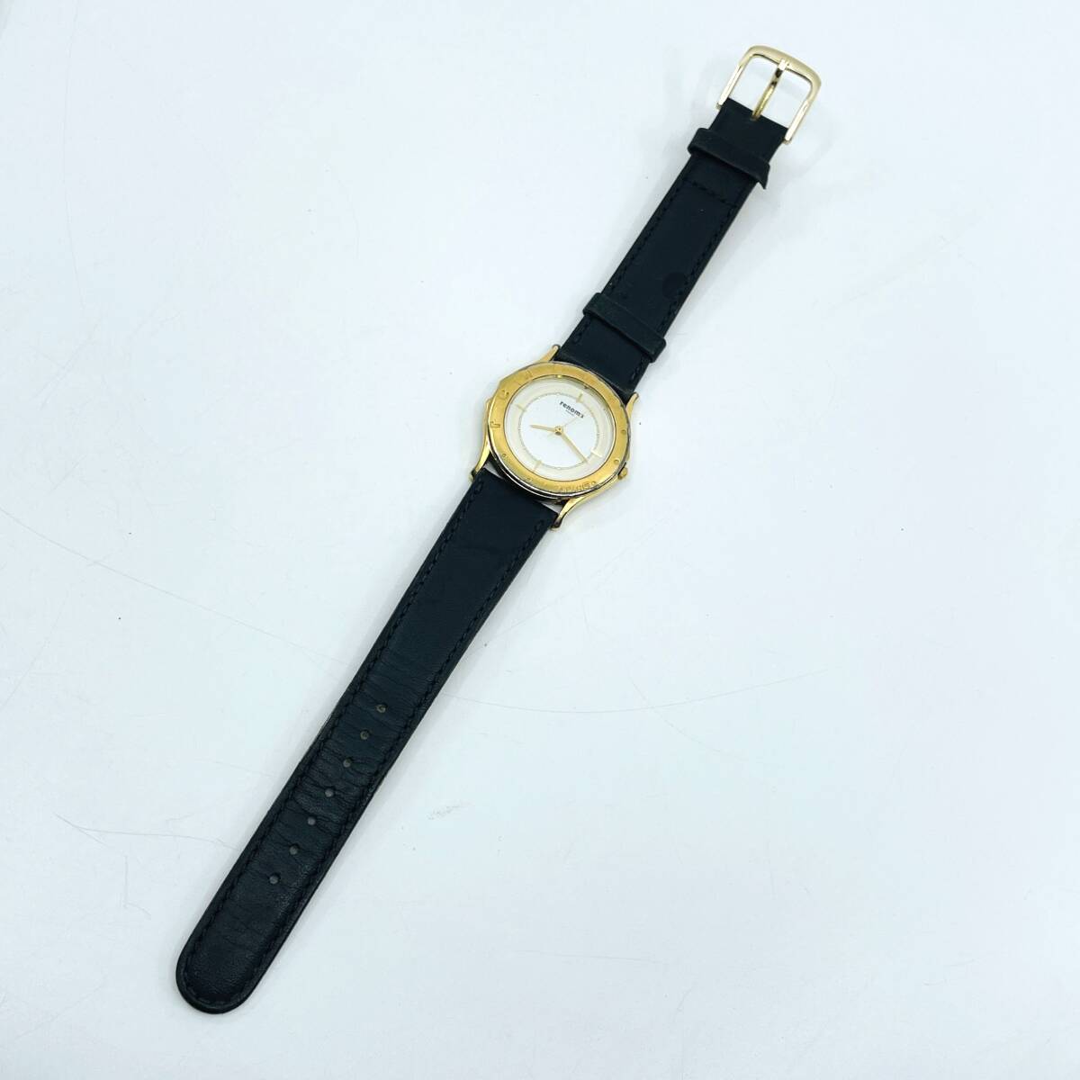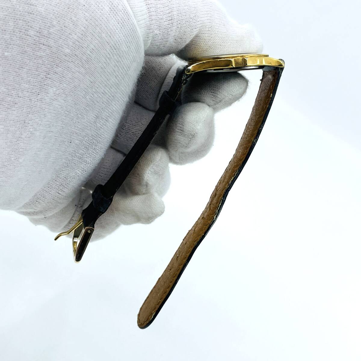クォーツ 腕時計 シルバー文字盤 3針 ラウンド ケースゴールド ベゼルロゴ レザーベルト ボーイズサイズ