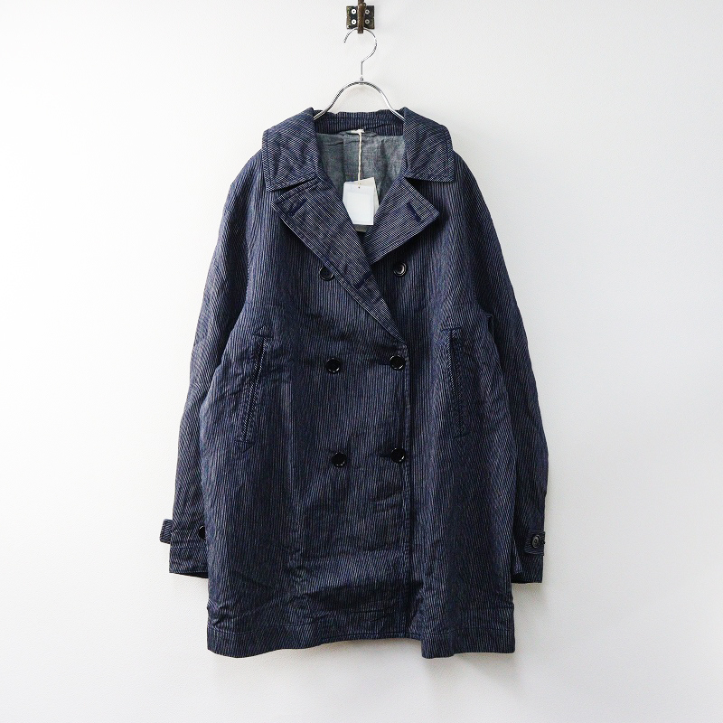 美品 定価8.3万 45R 45rpm フォーティファイブアール 麦サテンのPコート 4\ネイビー インディゴ コットン ダブル【2400014687545】