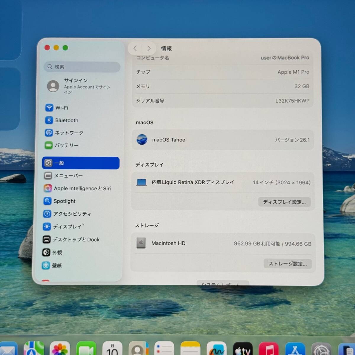 充放電回数112◆Macbook Pro A2442 2021◆Apple M1 Pro◆メモリ32GB◆SSD1TB◆Liquid Ratina◆14インチ◆macOS Tahoe◆ACアダプター | |