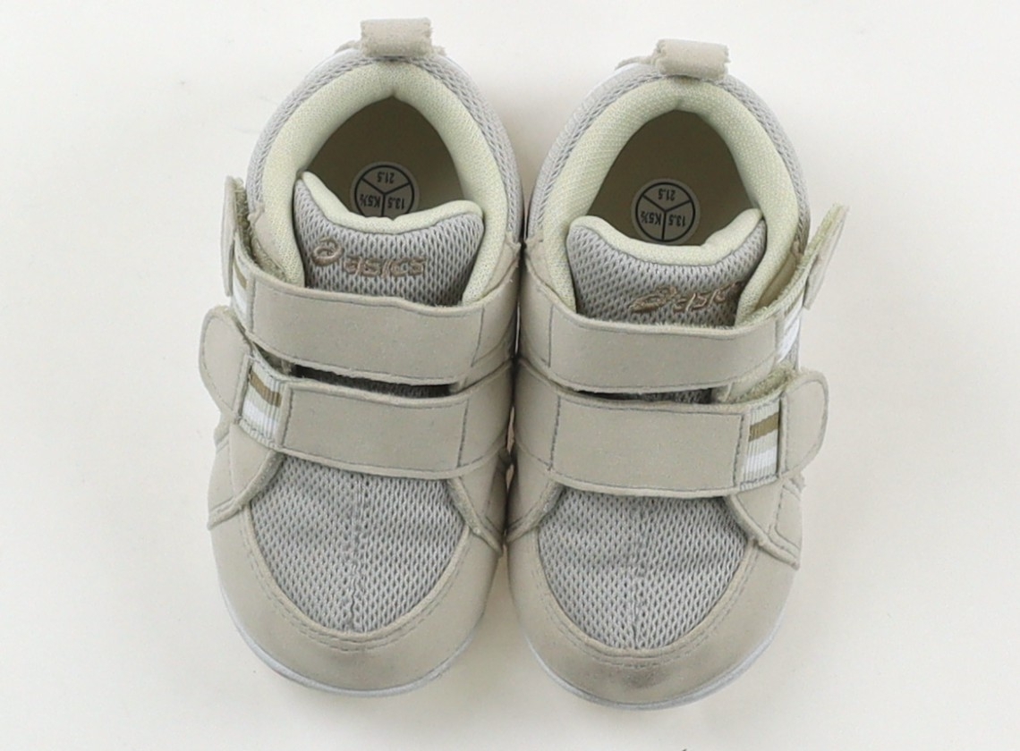 実際のサイズ表記は13.5cm。マジックテープ留め。つま先と靴裏に薄汚れ、つま先に擦れがありますが、その他目立つ汚れはありません。