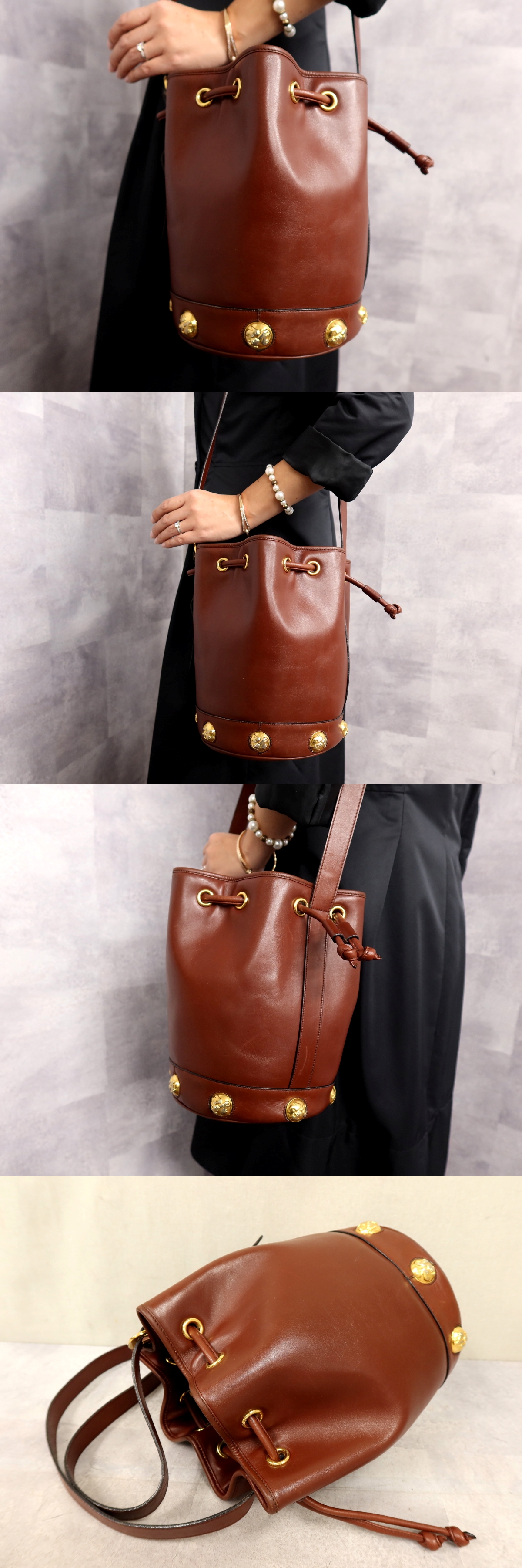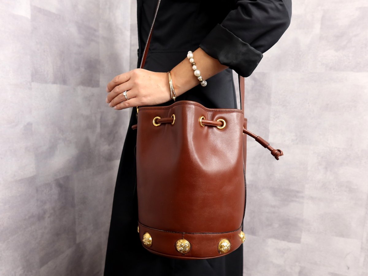 ヒールモチーフ カーフ レザー 巾着 ショルダー バッグ
