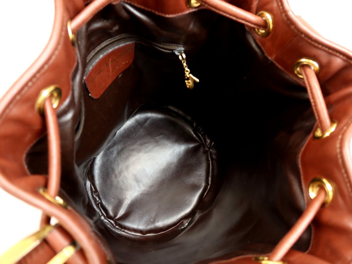 ●超美品●Salvatore Ferragamo フェラガモ●ヒールモチーフ●カーフ レザー 本革●巾着 ショルダー バッグ●ブラウン●G金具●Js62180
