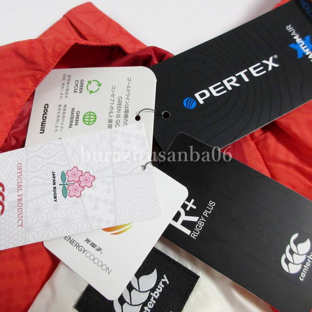カンタベリー製 ジャパン クイーンズ インサレーション ジャケットです。 ゲームジャージと同じ吉祥文様が入った インサレーションジャケットです。 保温効果を発揮する高機能中綿を採用しており 薄手で暖かく非常に軽量です。 リサイクル原料を使用した 地球環境に配慮した素材になります。 前面両サイドに ジッパー付きポケットあり。 フード一体型。 タイト目に着るデザインです。 ラグビー日本代表 オフィシャルライセンスチームキット。 JAPANロゴ・日本国旗・ 桜エンブレム刺繍パッチ入りの レアな逸品です。 ◇(株)ゴールドウイン正規品 中国製 ◇状態:未使用 下げ札あり 外装無し ◇定価:39,600円 税込 ◇素材:表地:ナイロン100% 中わた:ポリエステル100% 裏地:ナイロン100% ◇カラー:10/ホワイト ★サイズ表記 メンズ L タグ表記サイズ チェスト 92~100cm 身長 170~180cm 実寸は以下になります 身幅 57.5cm 着丈 70.5cm(背面) 裄丈 86cm ※多少の誤差はご了承ください ※商品寸法には個体差による若干の誤差がございます ※パンツは付属しません ★ご新規 評価一桁の方は入札ご遠慮ください ●モニター環境により実際のお色と異なる場合がございます ●採寸方法は全アイテム「平置き」です。 採寸方法により、若干の誤差(伸縮による1~2センチの誤差)は あると思われますがご了承下さい。 7824251182449 | |||
