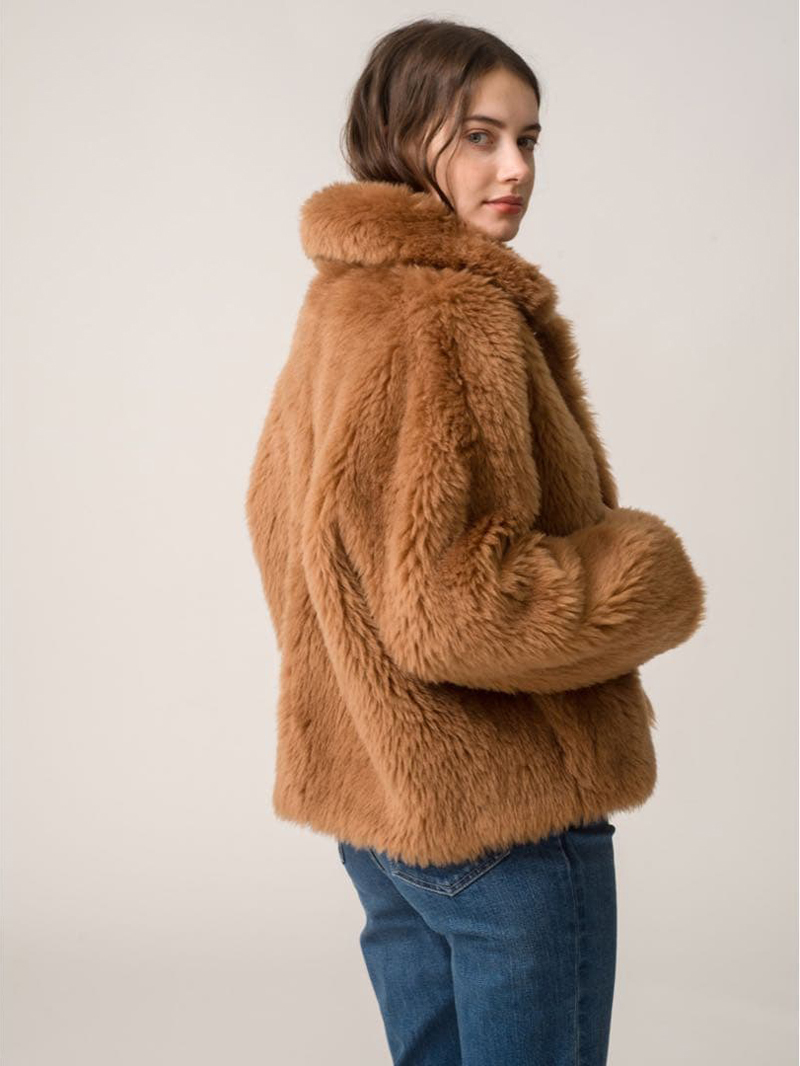 毛足の長いウールボアジャケットは、見た目にもあたたかく軽い着心地が特徴です。
