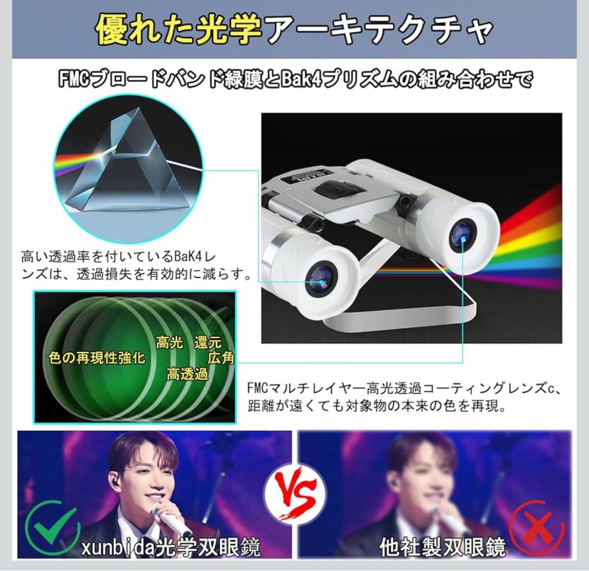 双眼鏡 ライブ用 高倍率 オペラグラス【新開発・ 超軽量192g】 BaK4プリズム FMCマルチコート 生活防水 子供/女性適用 ライブ/オペラ/野鳥観察/登山/アウトドア/旅行 ネックストラップ 収納バッグ付き 日本語説明書(ホワイト)