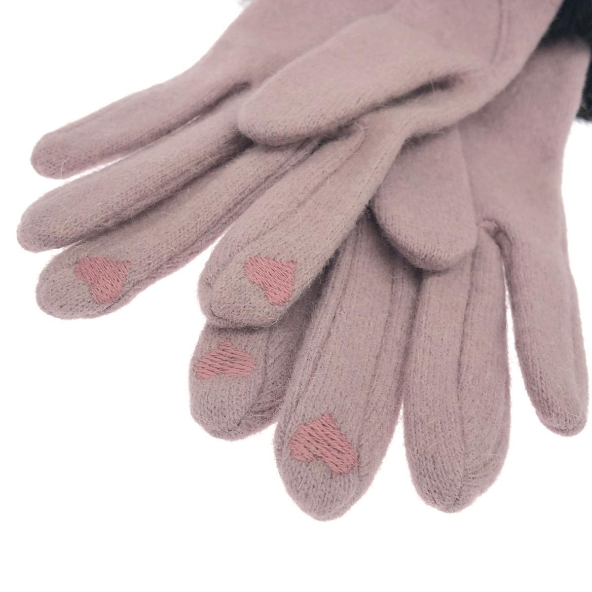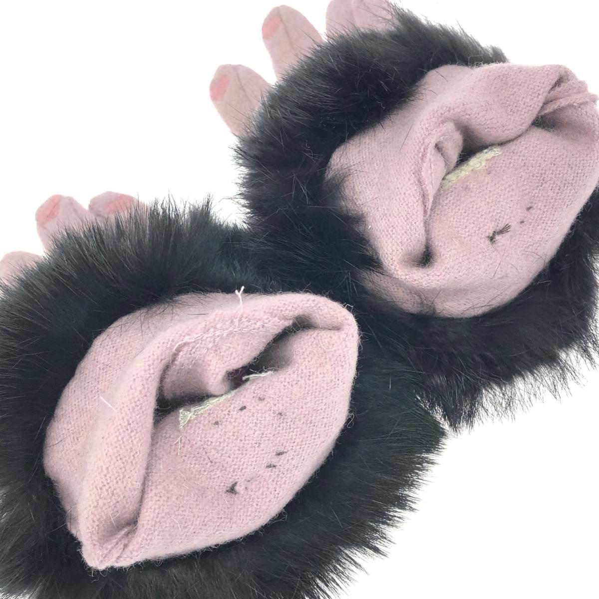 手袋 ロゴ刺繍/ベロアリボン/ラビットファー |