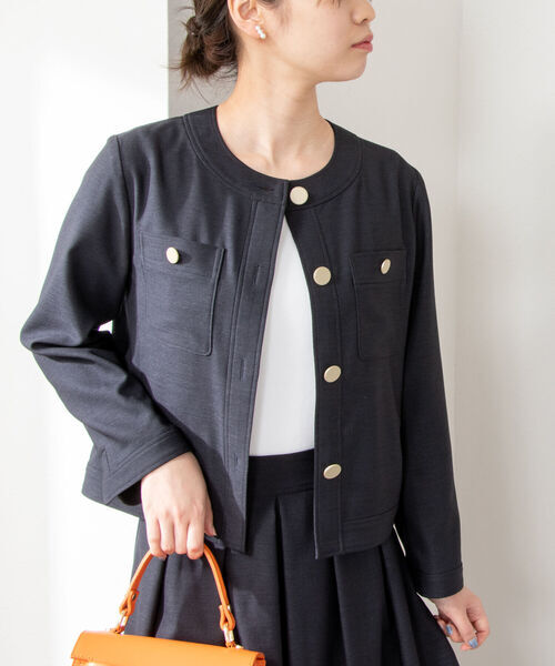 キーワード:ジャケット ノーカラージャケット レディース ショート丈 無地
