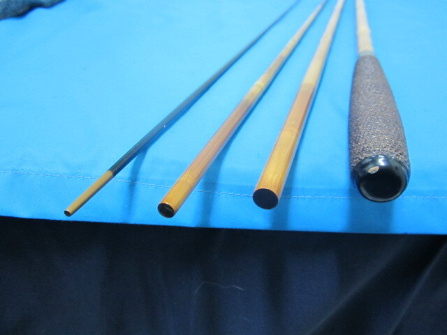竹竿に詳しい別の友人に見せたところ、元(#1)の口に違和感があると指摘され、よく見てみると塗装のよれ(6枚目の写真)の様なのが見られました。割れているようではないですが、竿師に出したほうが良さそうみたいでした。