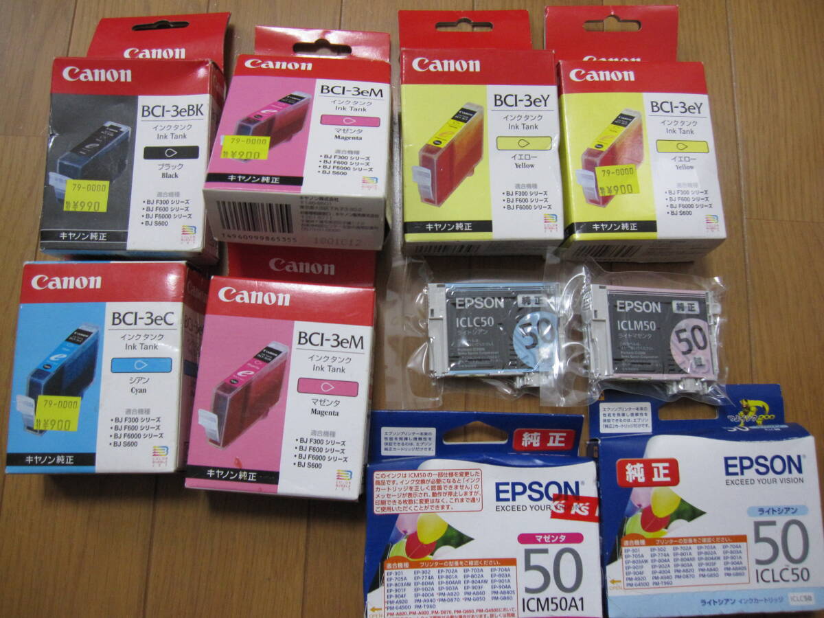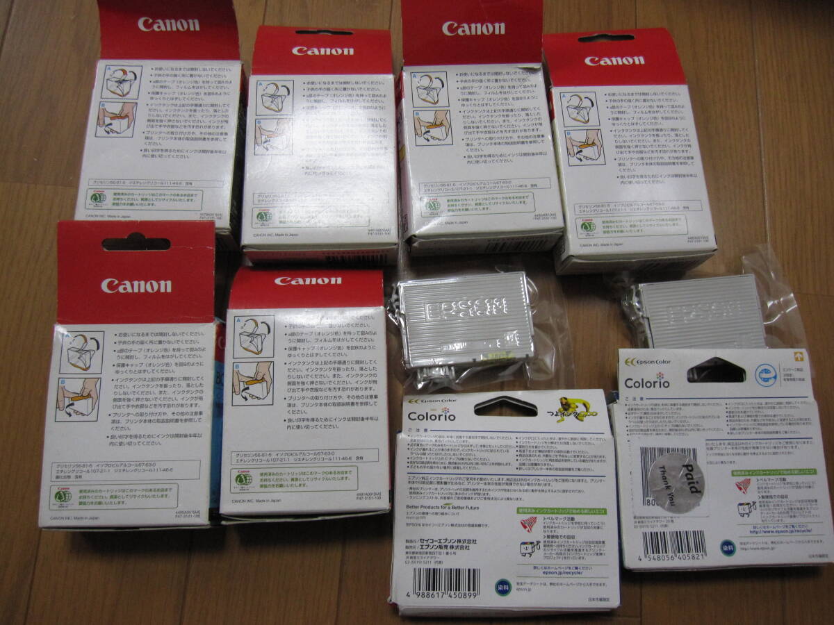 | キャノンとエプソン純正のインクです。 未開封ですが箱の程度は良くないです。 多分ほとんどすべてが期限切れだとと思います | ||