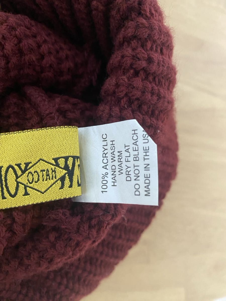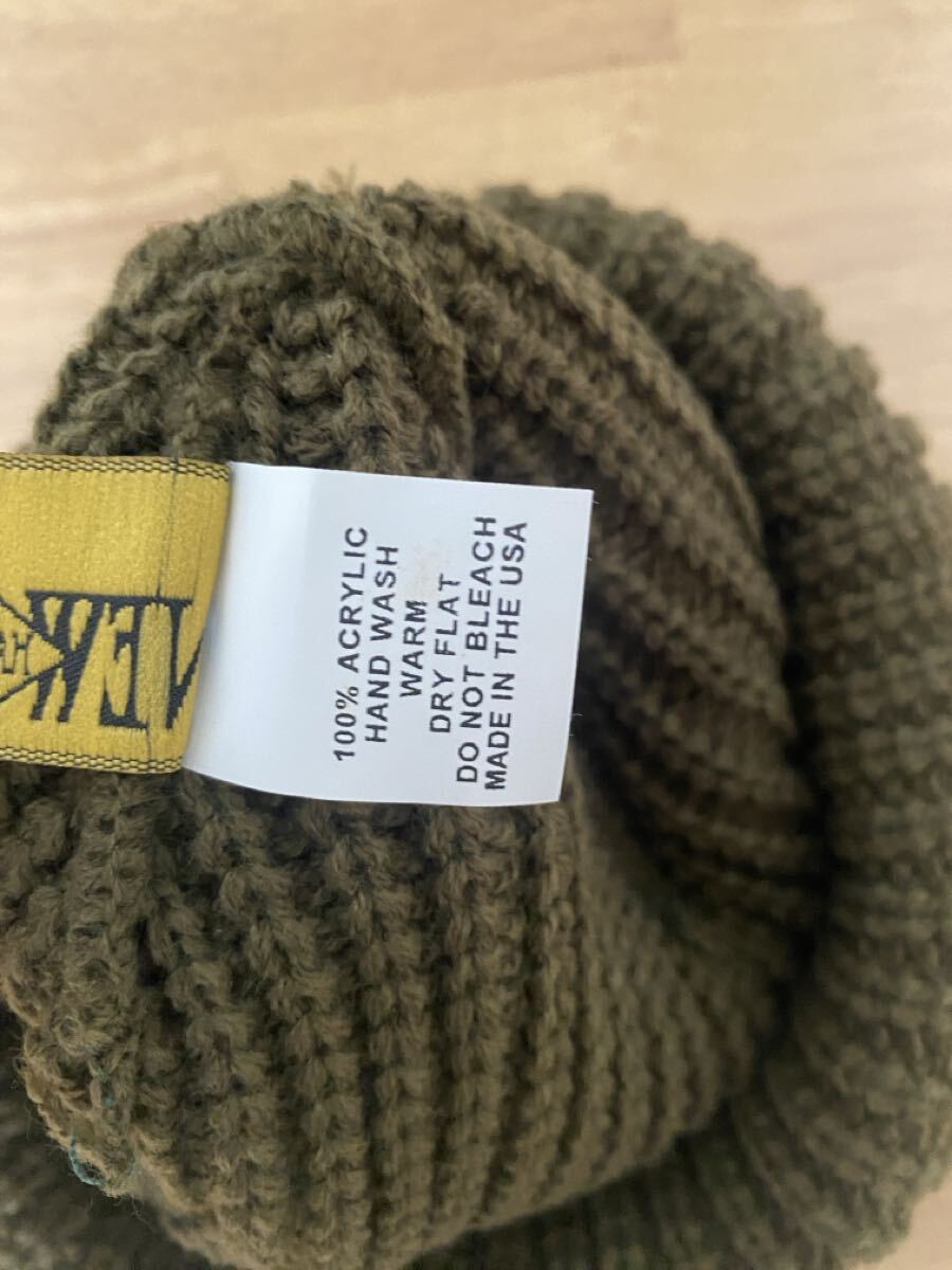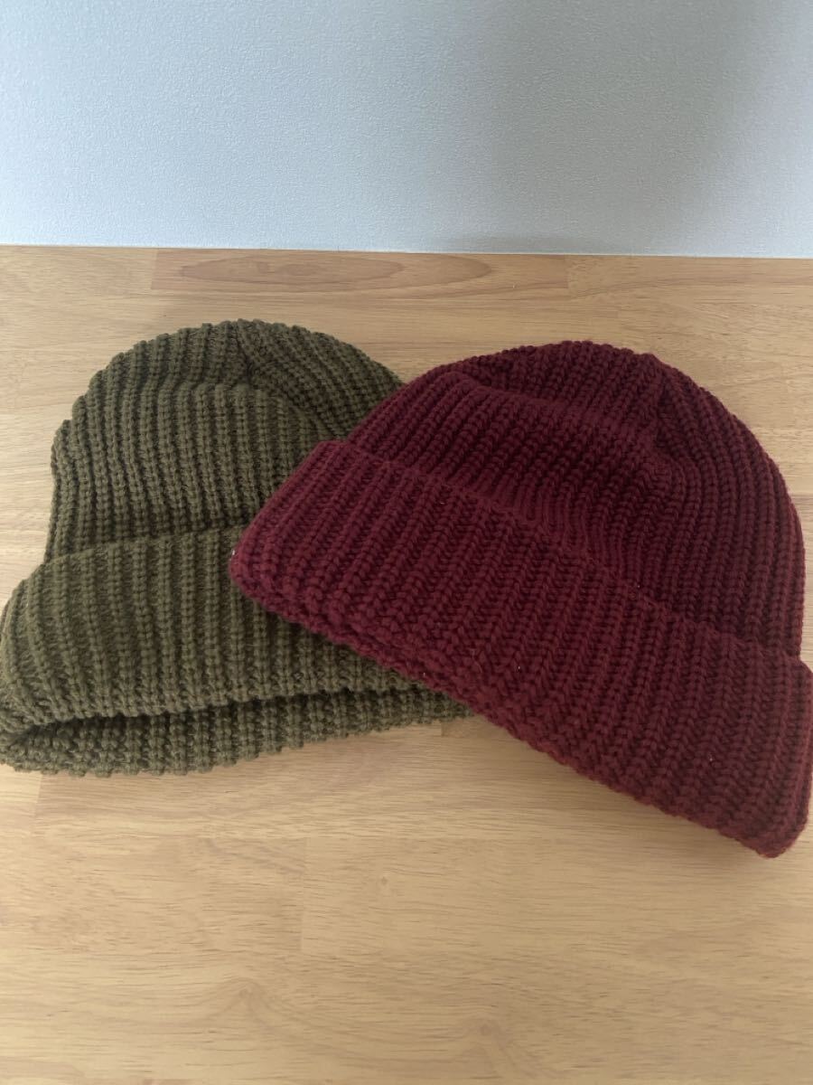 NEW YORK HAT CO ニットキャップ。色はエンジとカーキの2個セット。素材はアクリル100%、USA製。