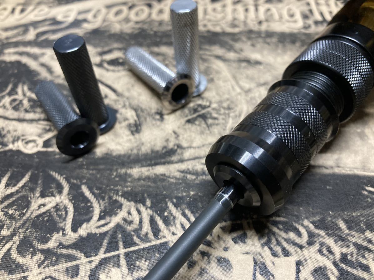 ※アーバーがキツめな場合はフェルールにキャップとアーバーを先に差し込んでからロッドへ固定すると簡単です。