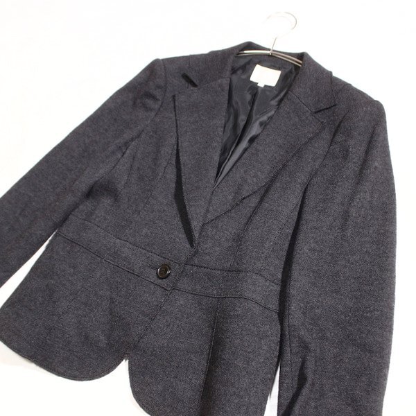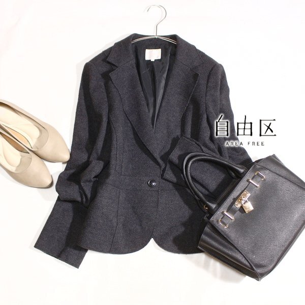 美品 オンワード樫山 自由区 ウール100% フラノ生地 ジャケット 38号 M 秋 冬 25B10