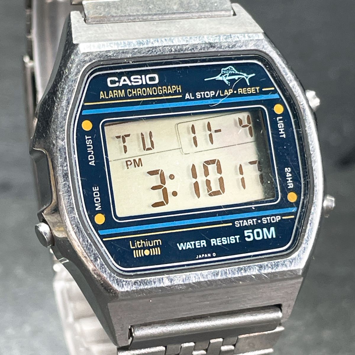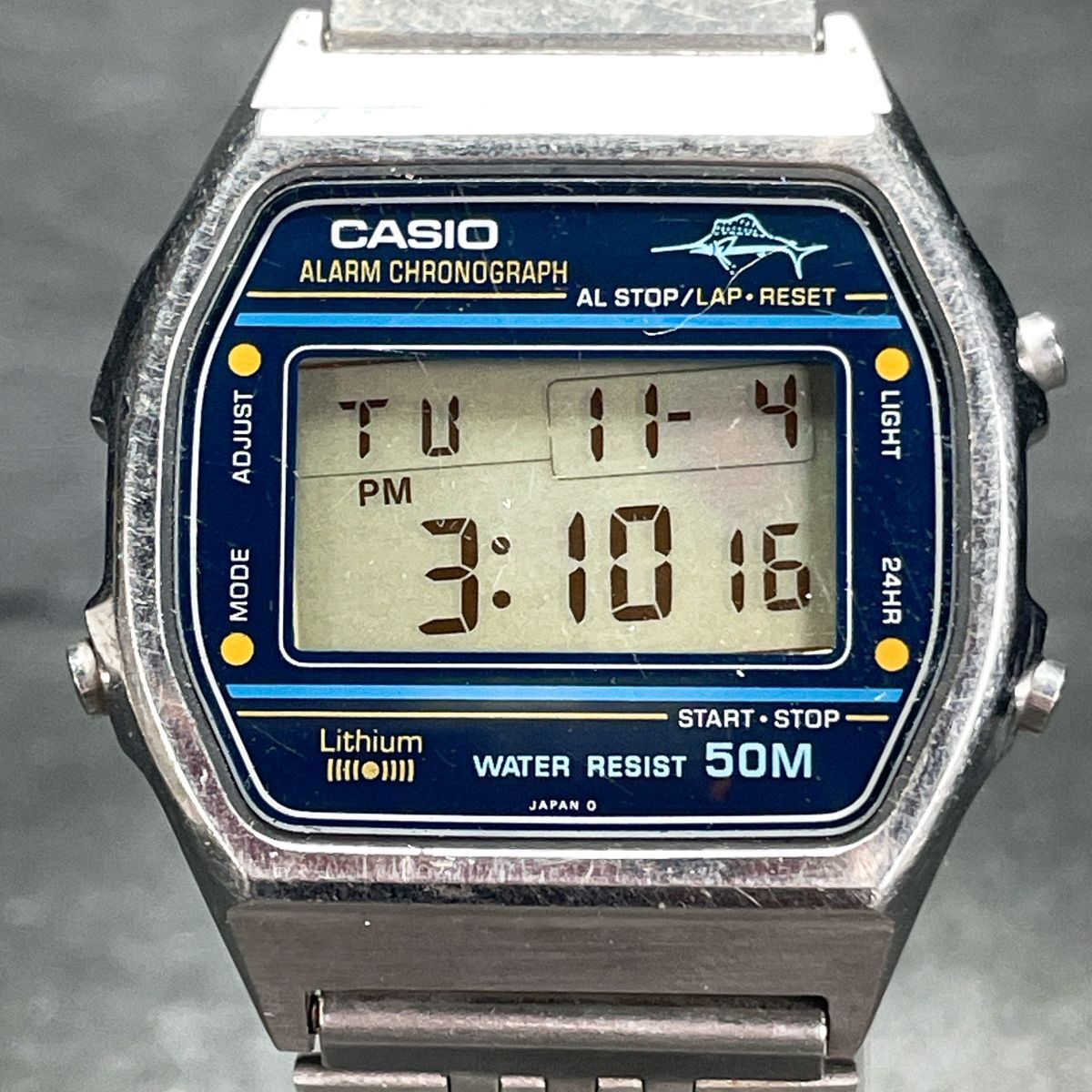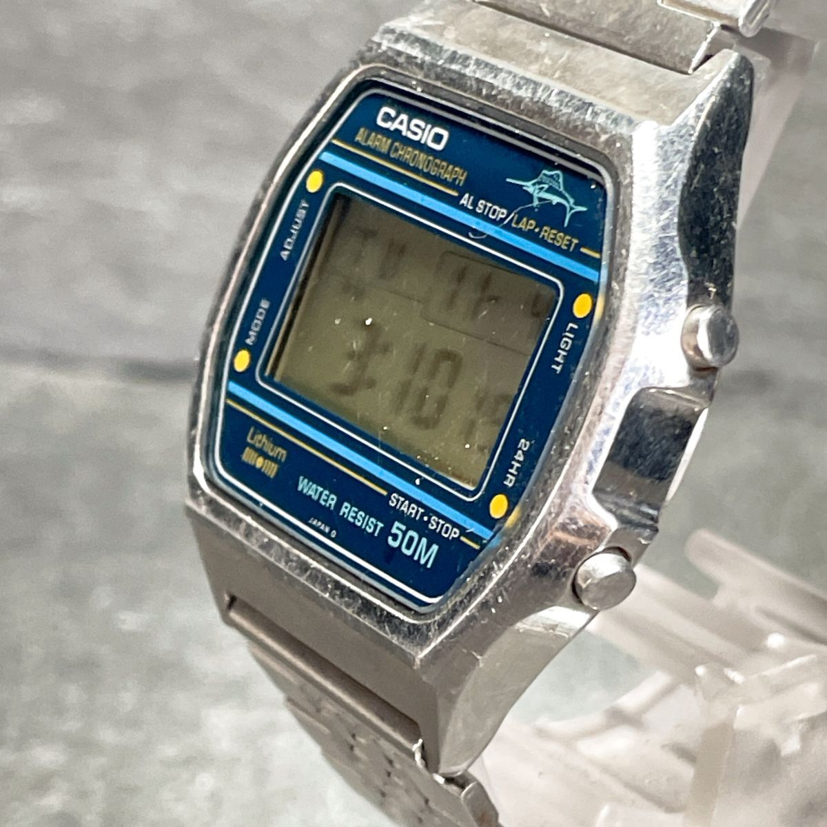CASIO カシオ W-36 腕時計 デジタル クオーツ 多機能 カレンダー スクエア メタルバンド シルバー ブルー 新品電池交換済み 動作確認済み