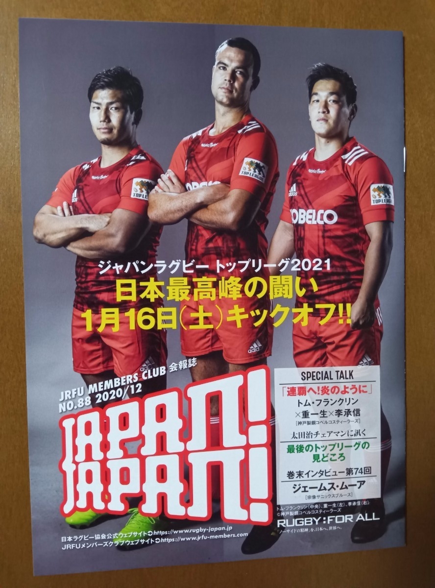 日本ラグビー協会による公式発行物で、試合写真や選手コメント、