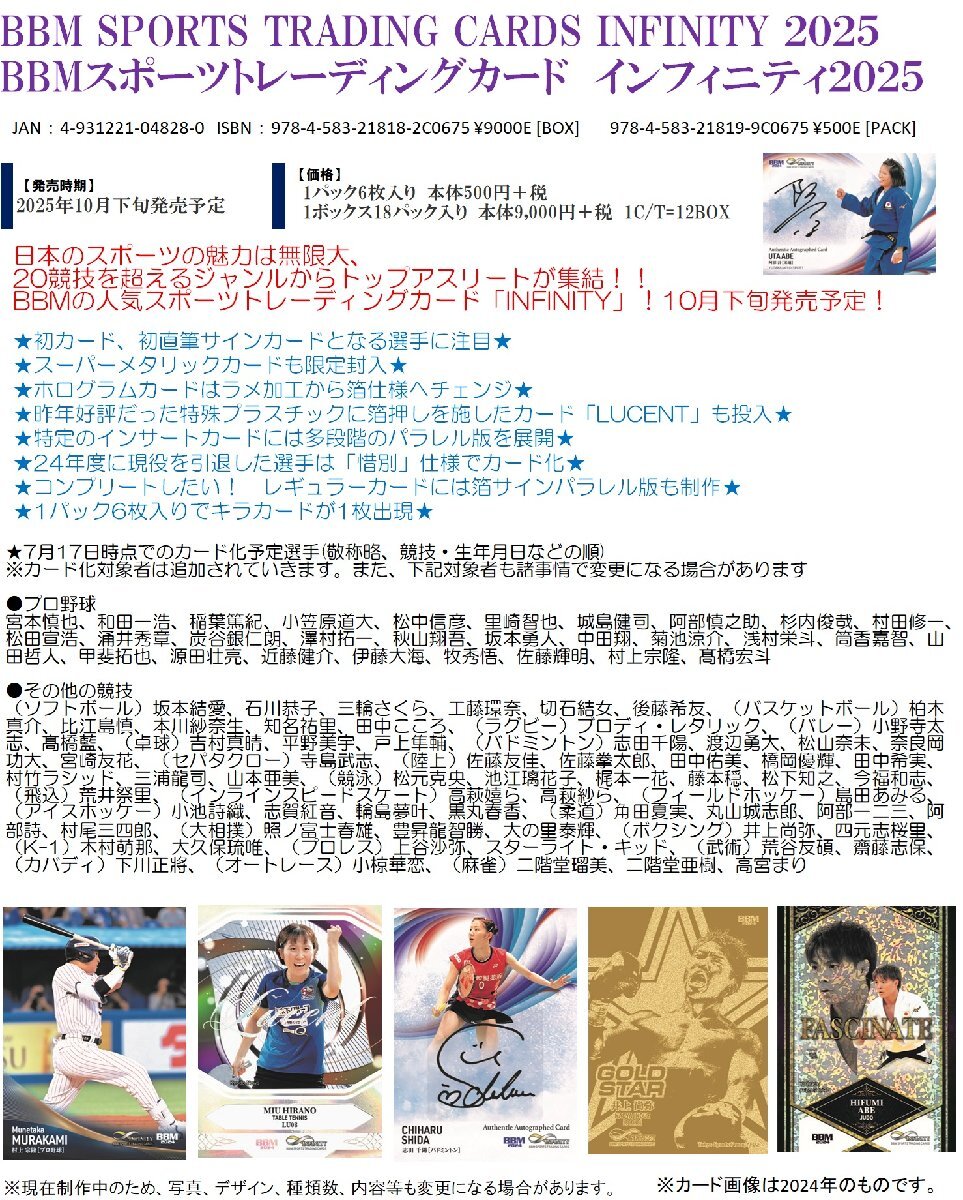 BBMの人気スポーツトレーディングカード「INFINITY」!10月下旬発売予定!