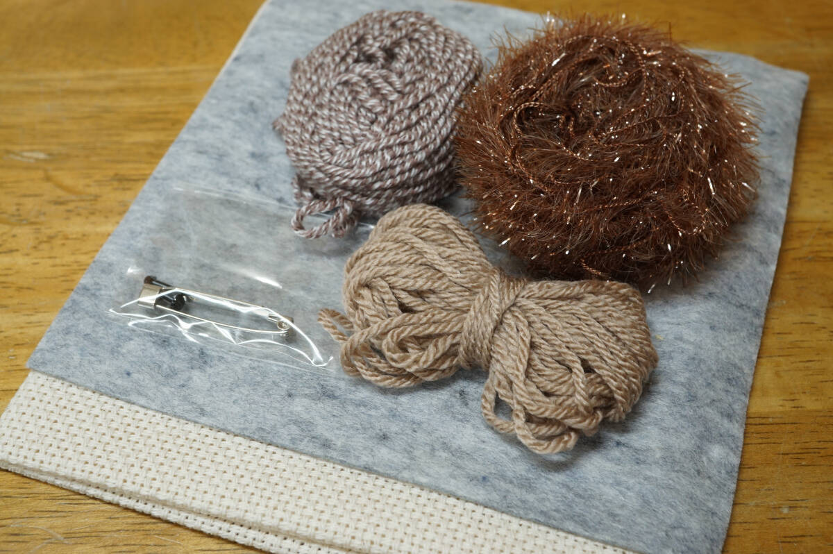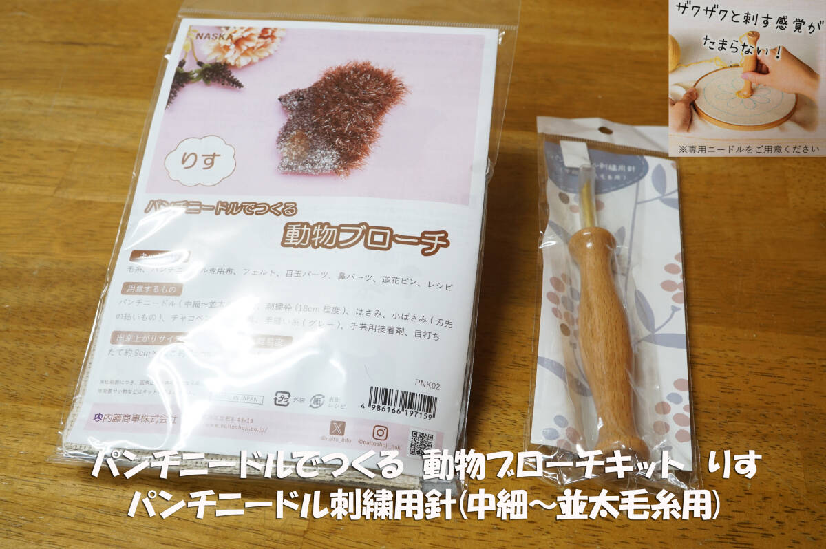 パンチニードルでつくる動物ブローチのキットと刺繍用針のセット出品でございます。