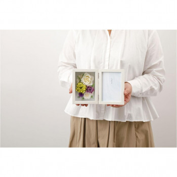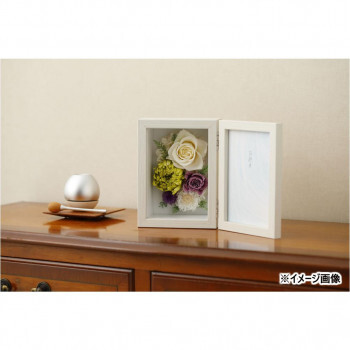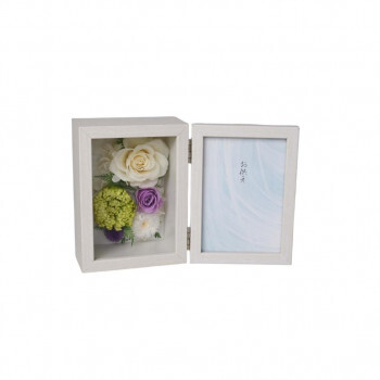 | 写真とお花を一緒に飾れるので、お仏壇などに置いても華やかな印象。フラワーアレンジメントと、フォトフレームが一体なので飾りやすい。 |