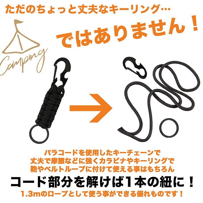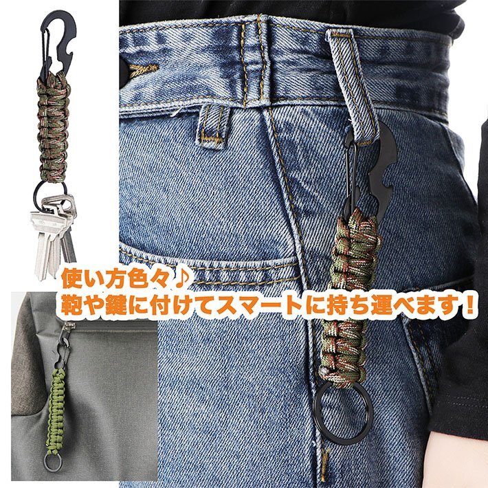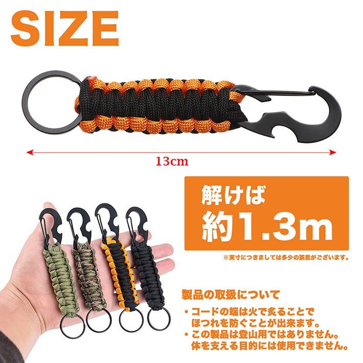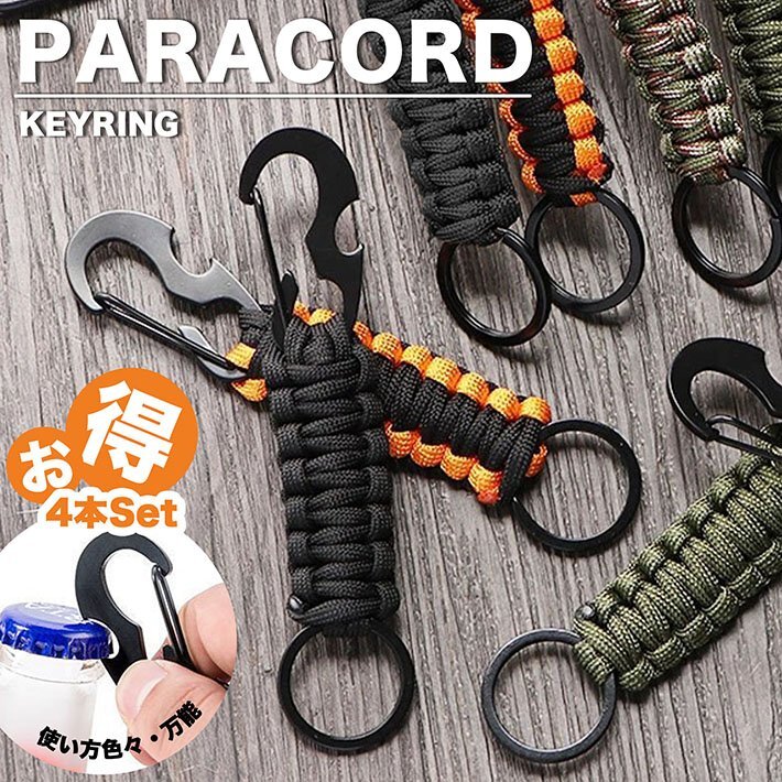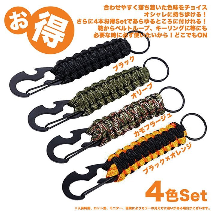カラビナ パラコード キーホルダー キーチェーン 4本セット 帽子フック キーリング アウトドア 7987344 ONESIZE 4色セット 新品