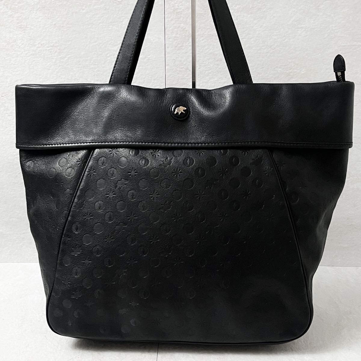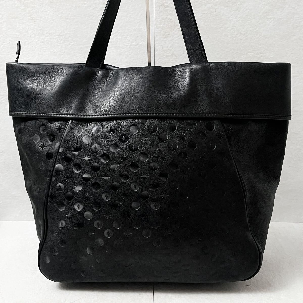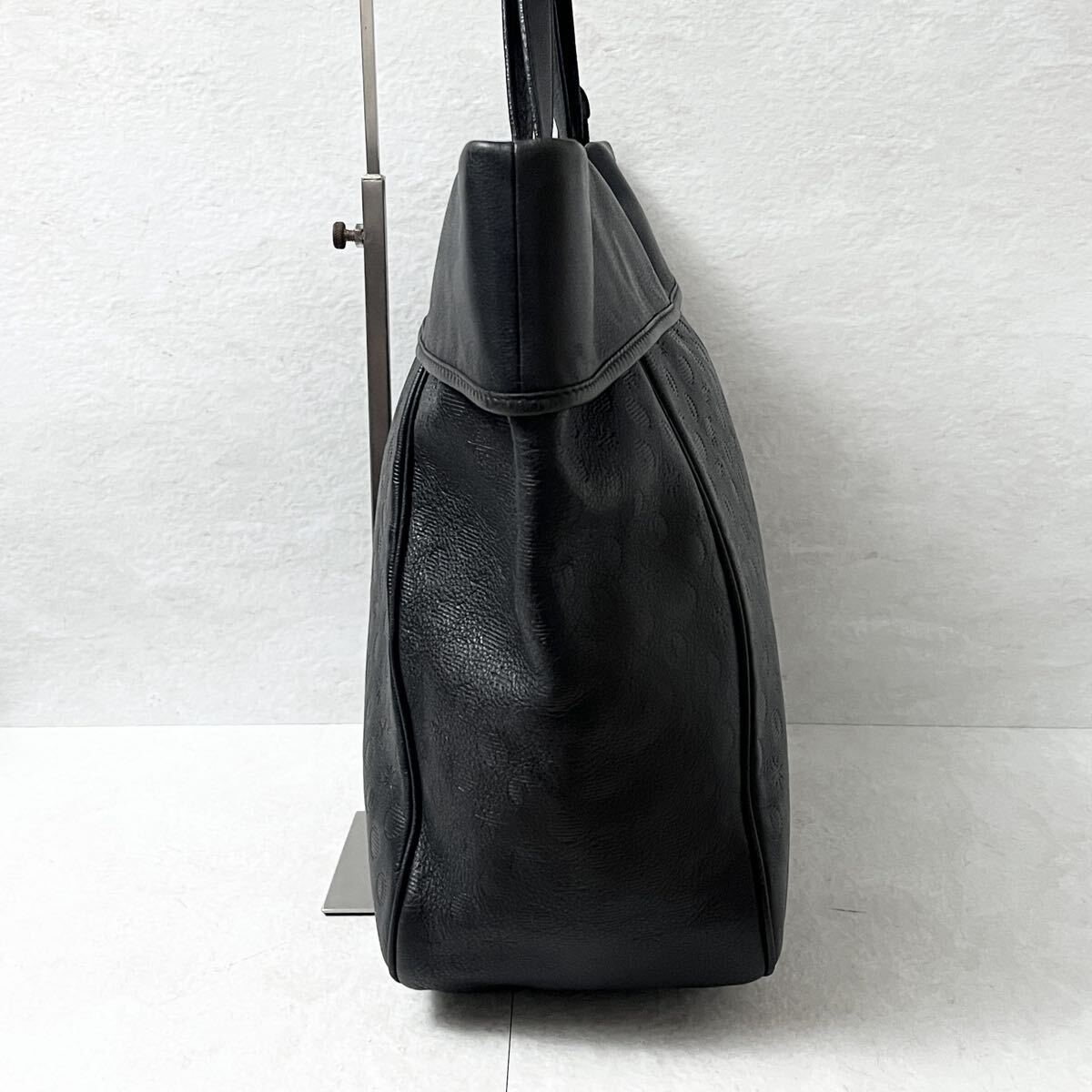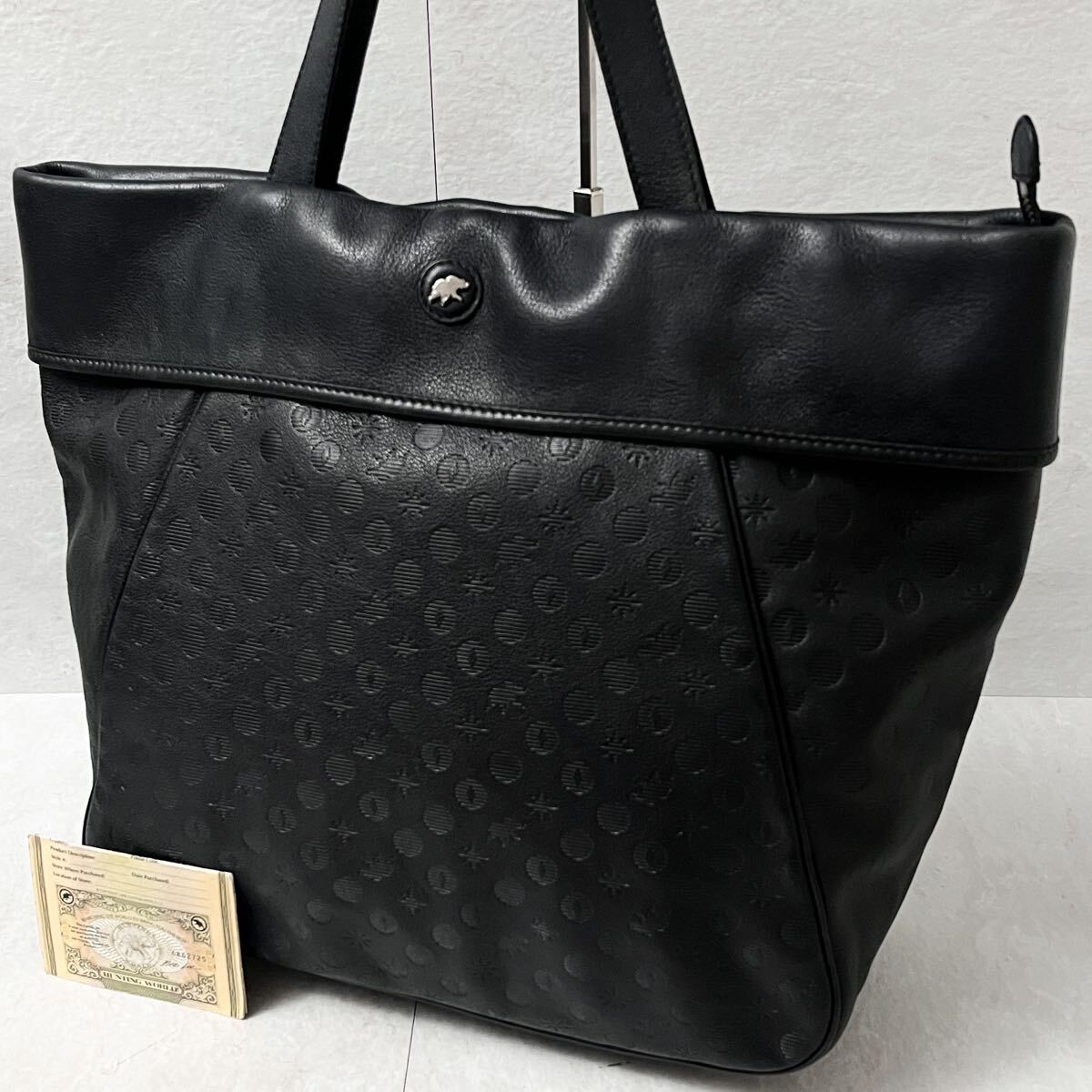 美品/大容量 ●HUNTING WORLD ハンティングワールド メンズ ビジネス トートバッグ ロゴ型押し総柄 レザー 本革 肩掛け ブラック