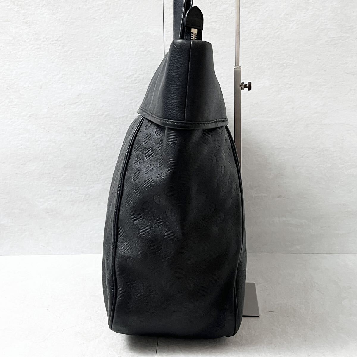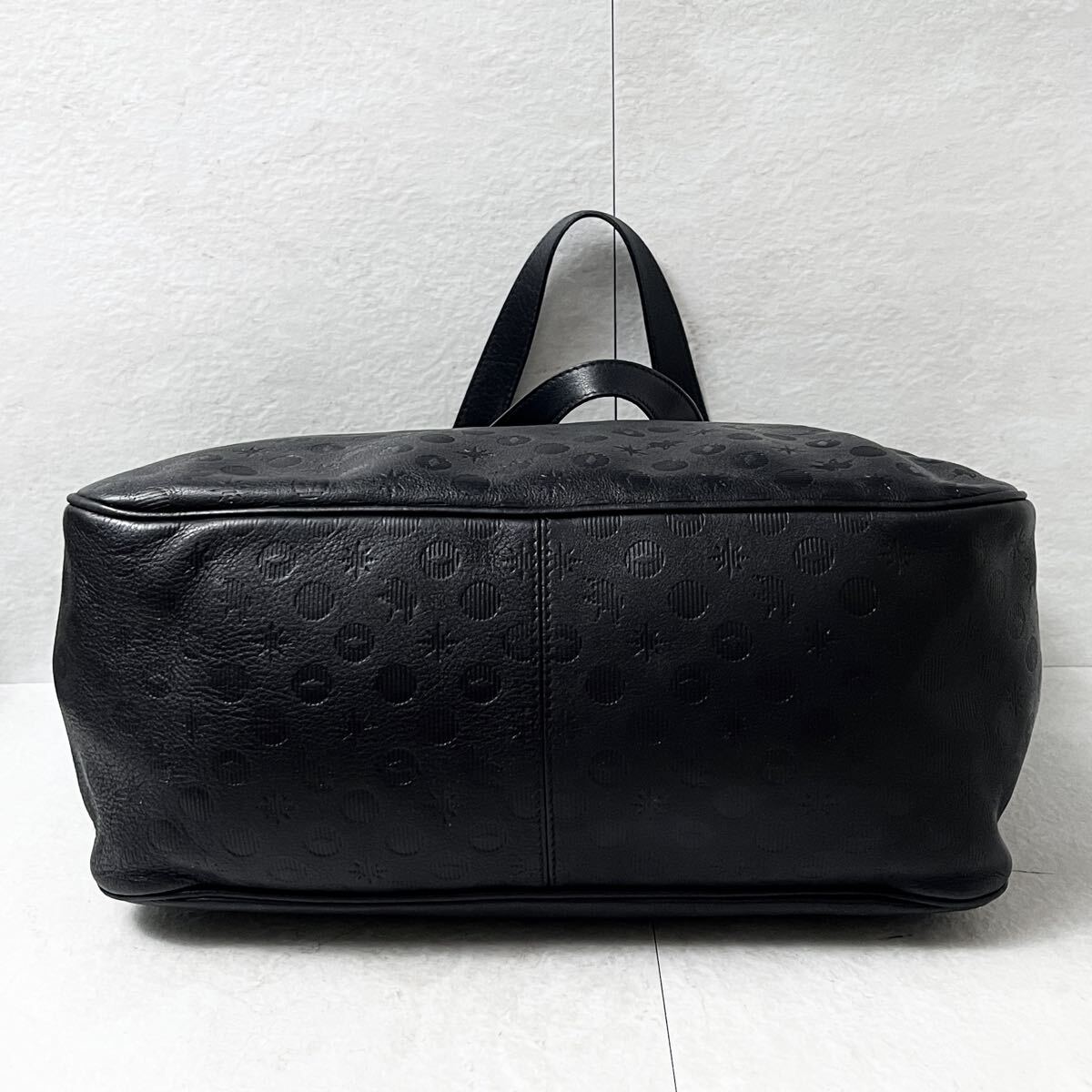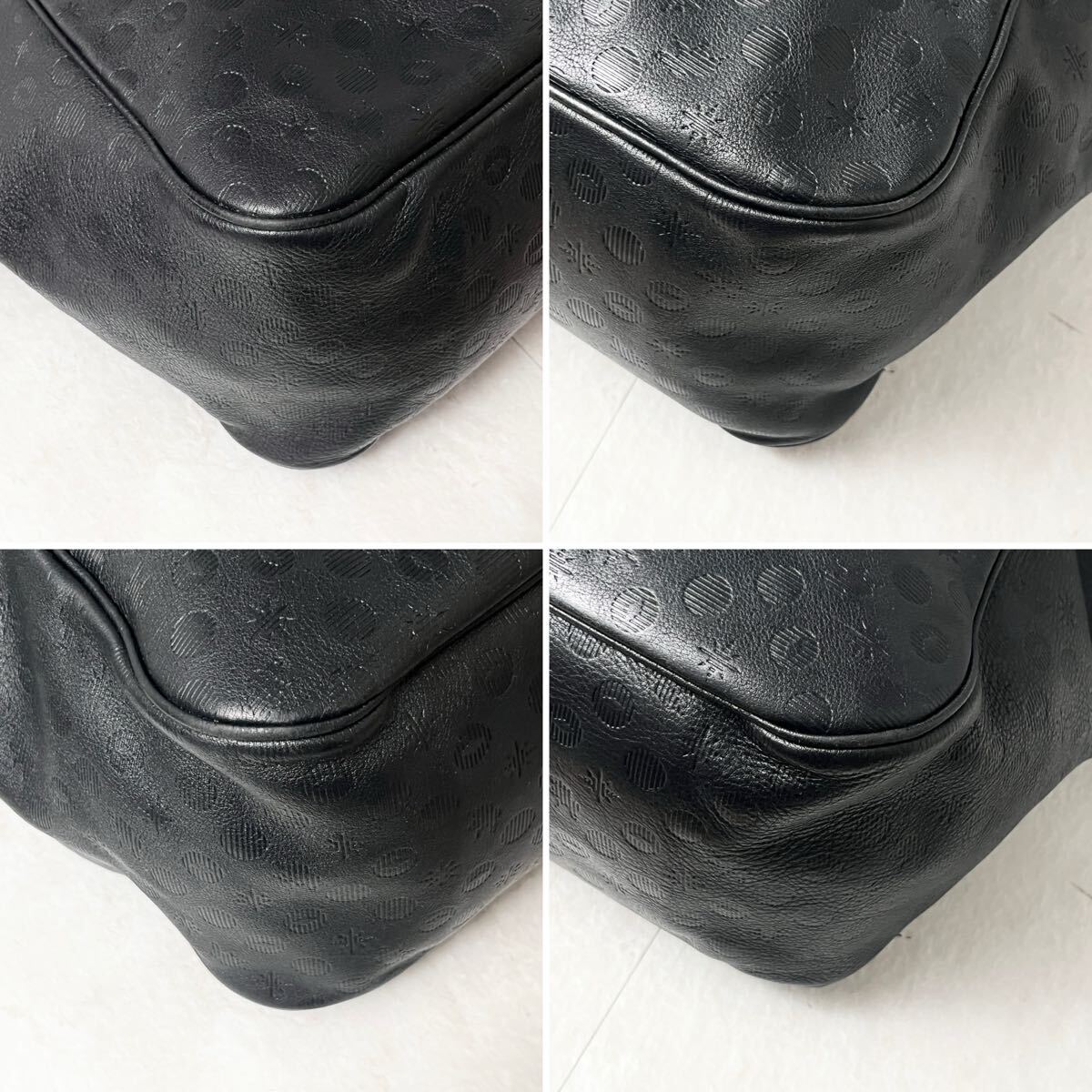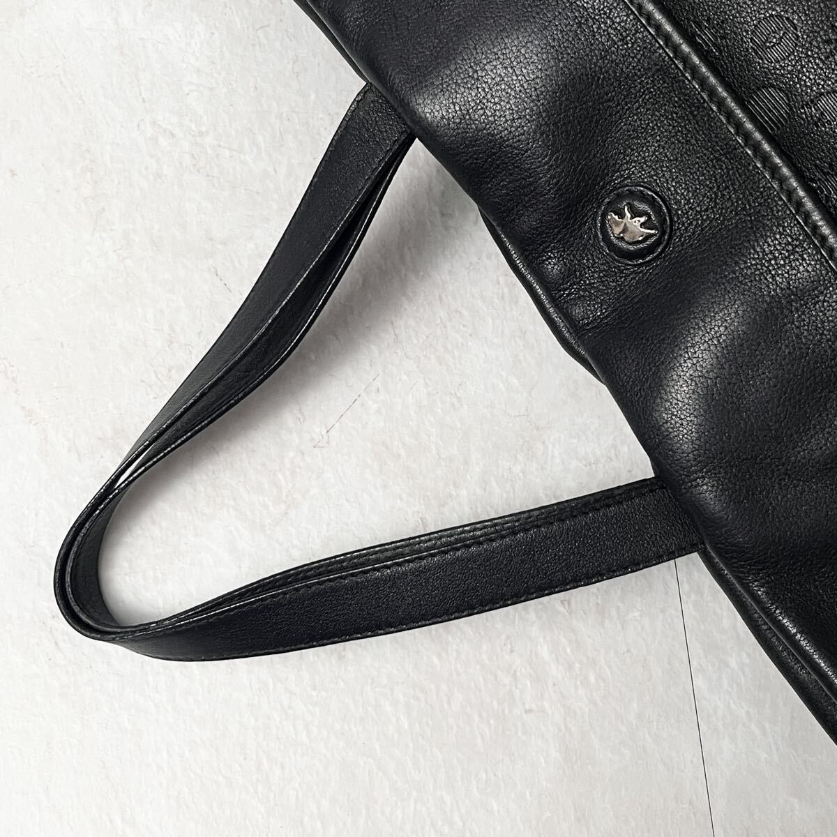美品/大容量 ●HUNTING WORLD ハンティングワールド メンズ ビジネス トートバッグ ロゴ型押し総柄 レザー 本革 肩掛け ブラック